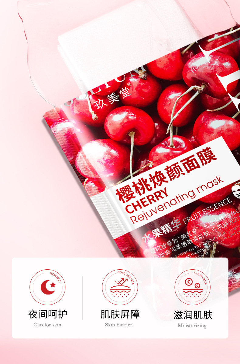xiaomeitang cherry facial mask 25g hydrating delicate pores moisturizing skin moisturizing mask wholesale genuine goods