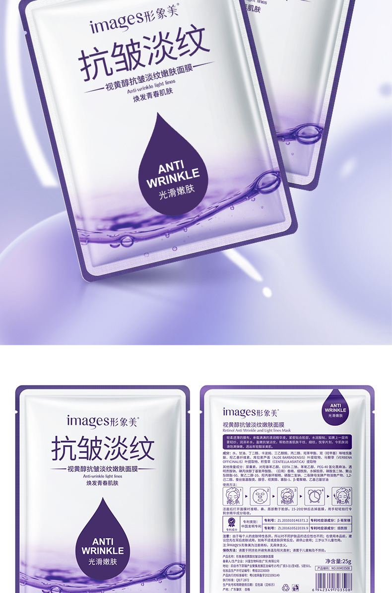 Images Retinol Anti-Wrinkle Tender Muscle Mask Nourishing and Hydrating Anti-Wrinkle Hydrating and Reducing the Fine Lines Mask Wholesale