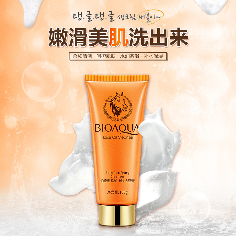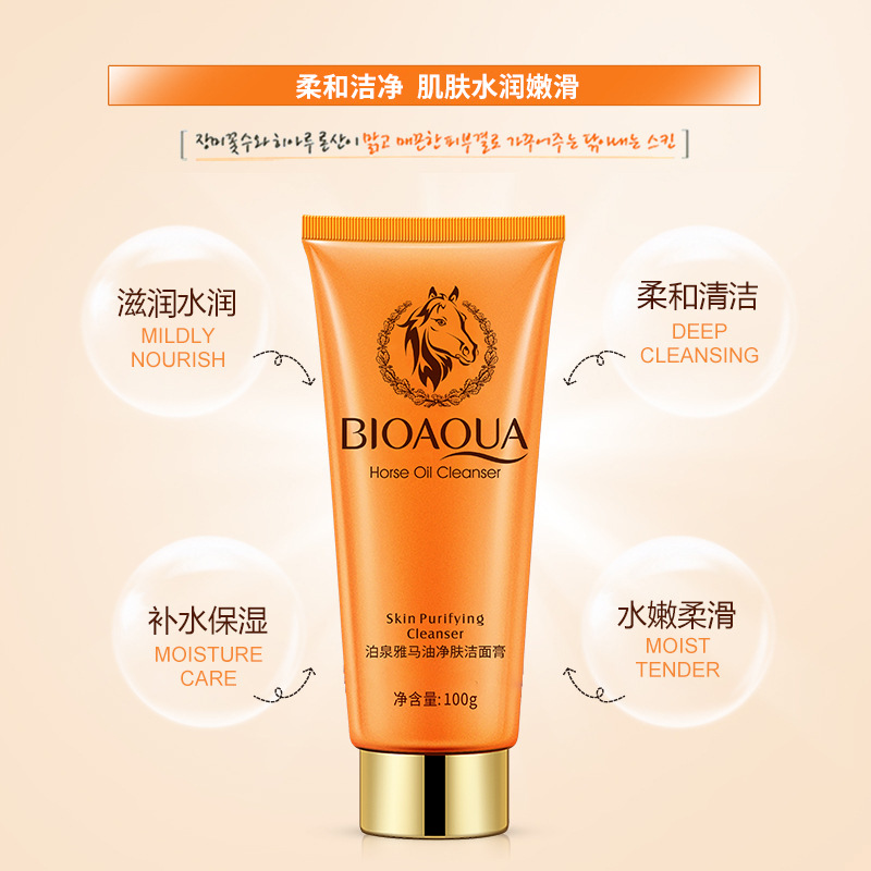 bioaqua horse oil facial cleanser facial cleanser cleansing cream deep cleansing gentle moisturizing pores blackhead removal female direct sales