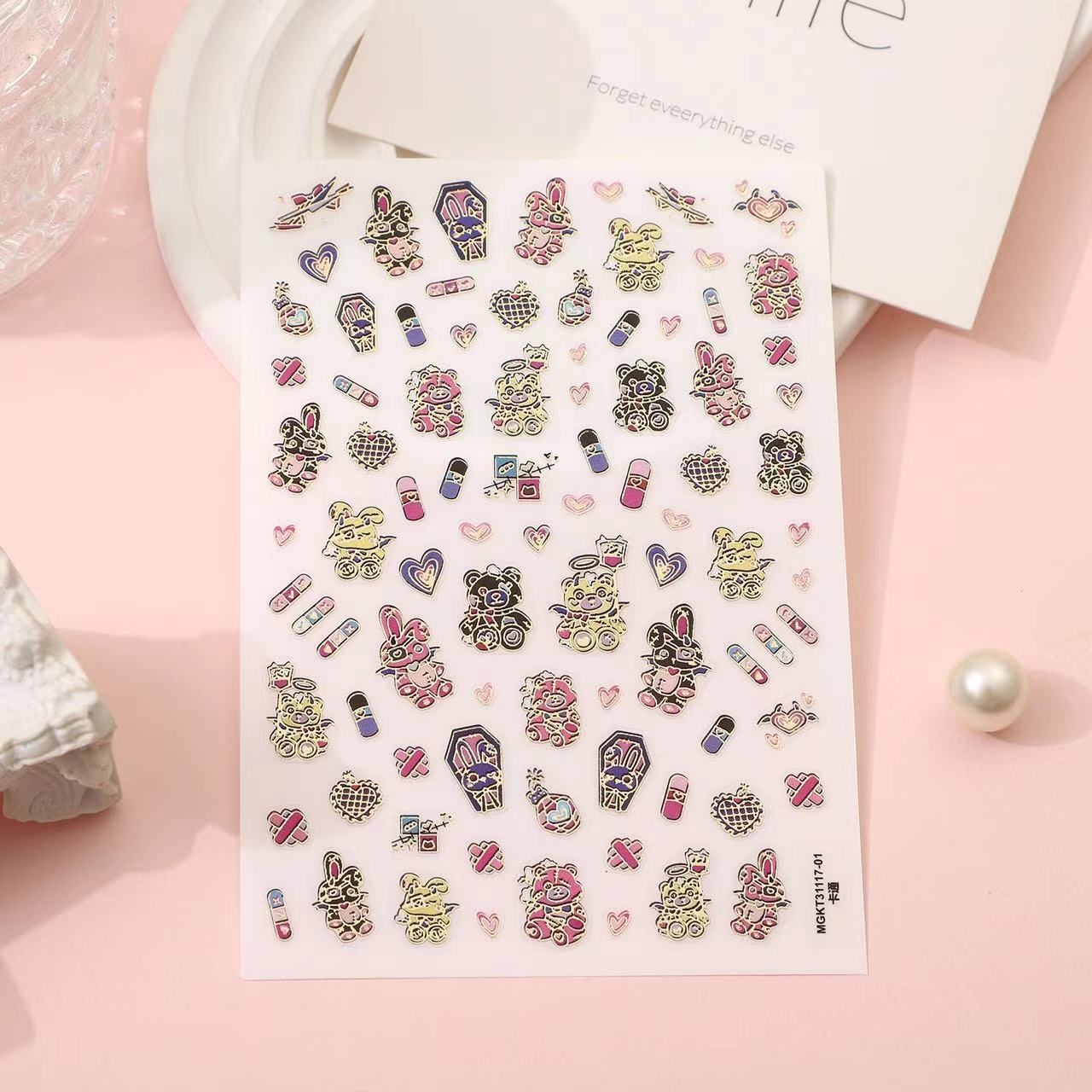 rose nail art japanese style cute gika wow nail art sticker adhesive relief pen holder three-dimensional cartoon nail sticker