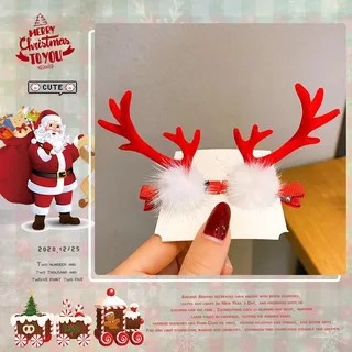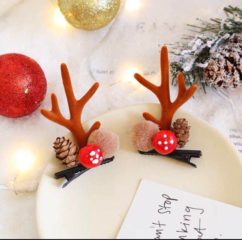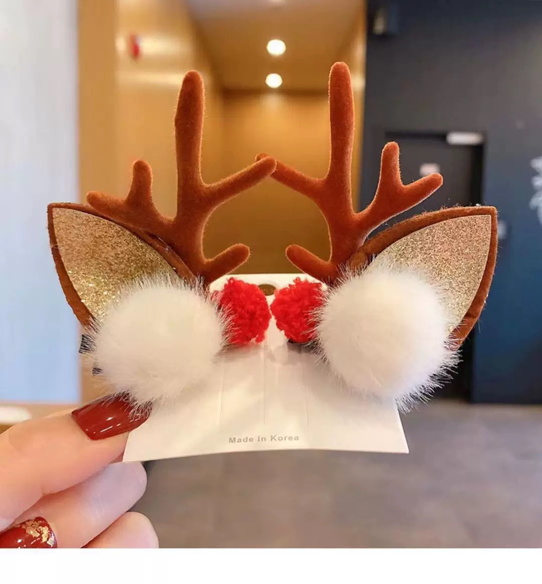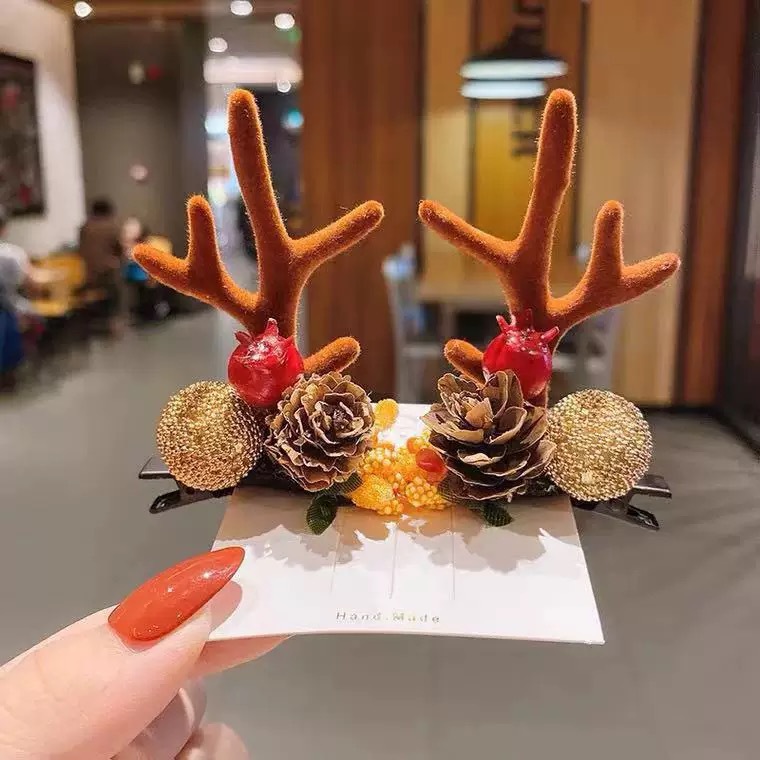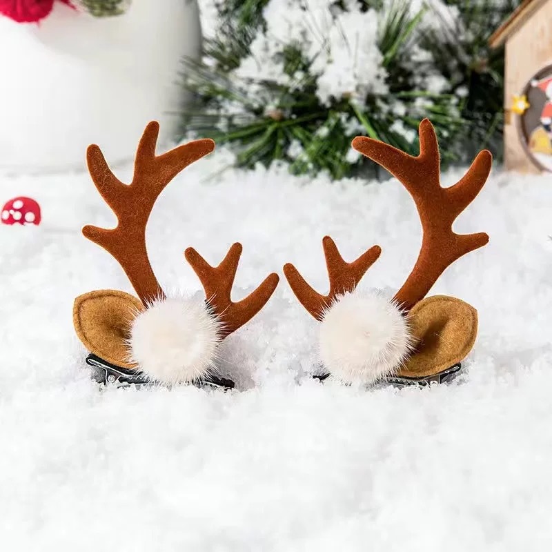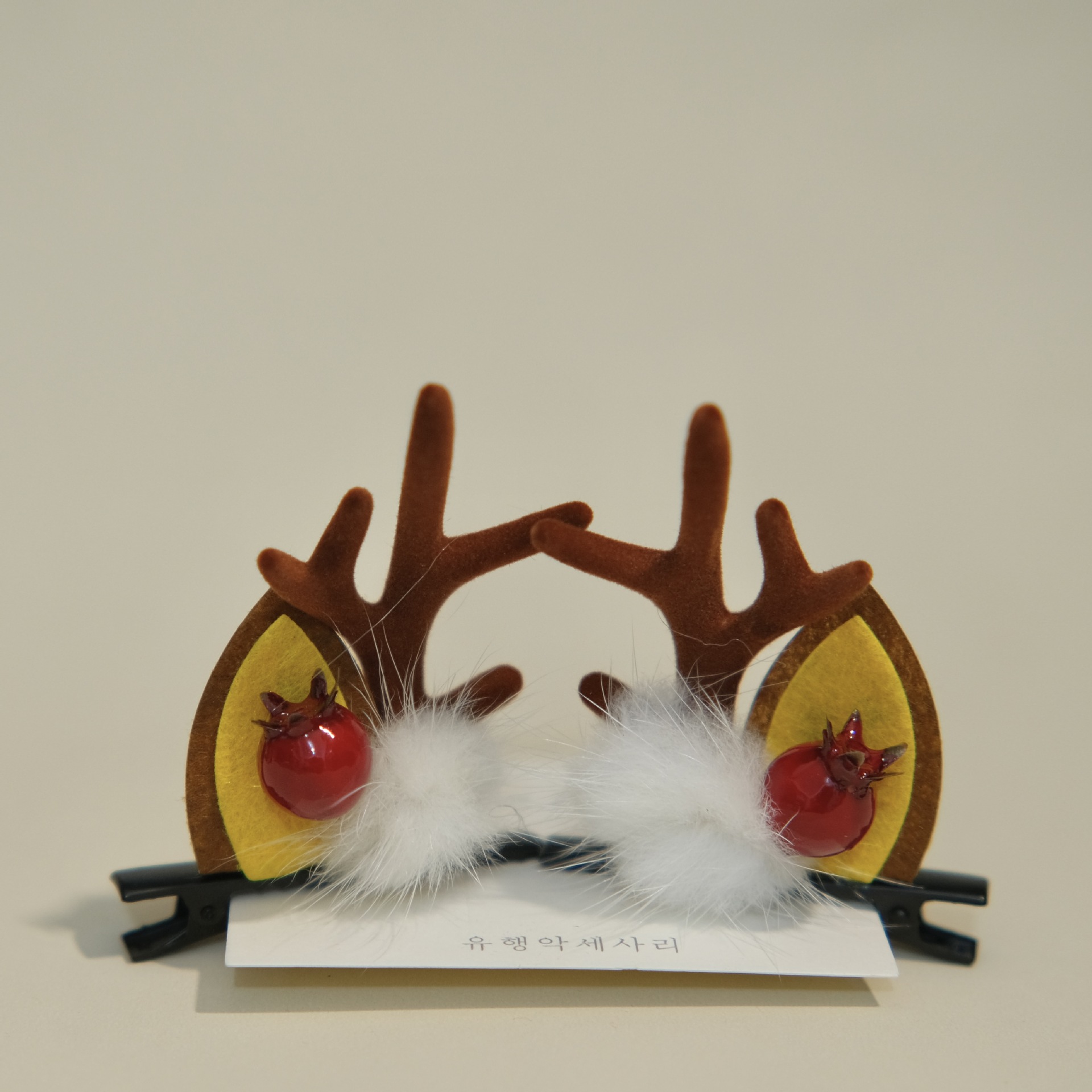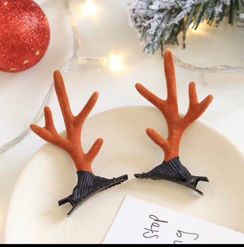 a pair of curved mink hair and red horn