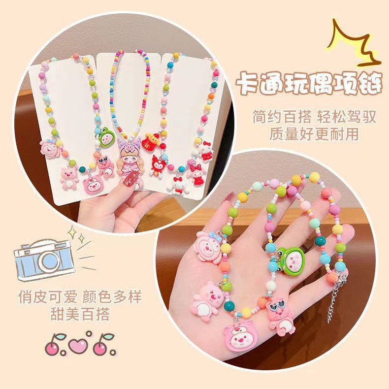 lanlan ornament children's cartoon character necklace little girl's colorful beaded pendant jewelry multi-accessories