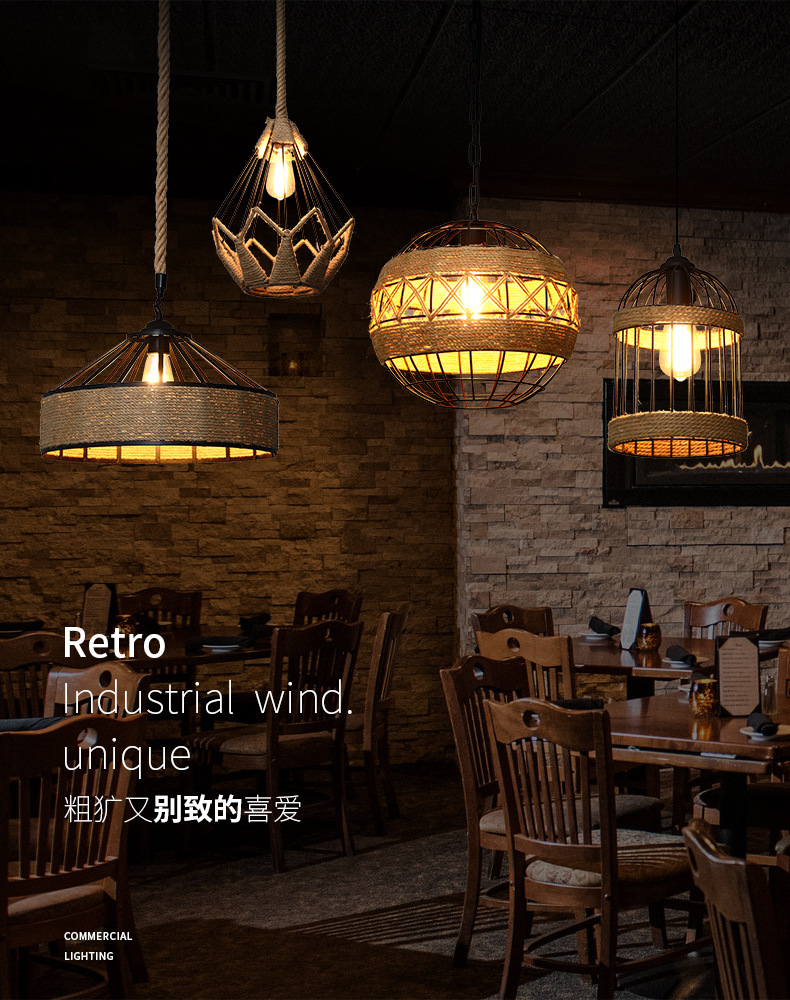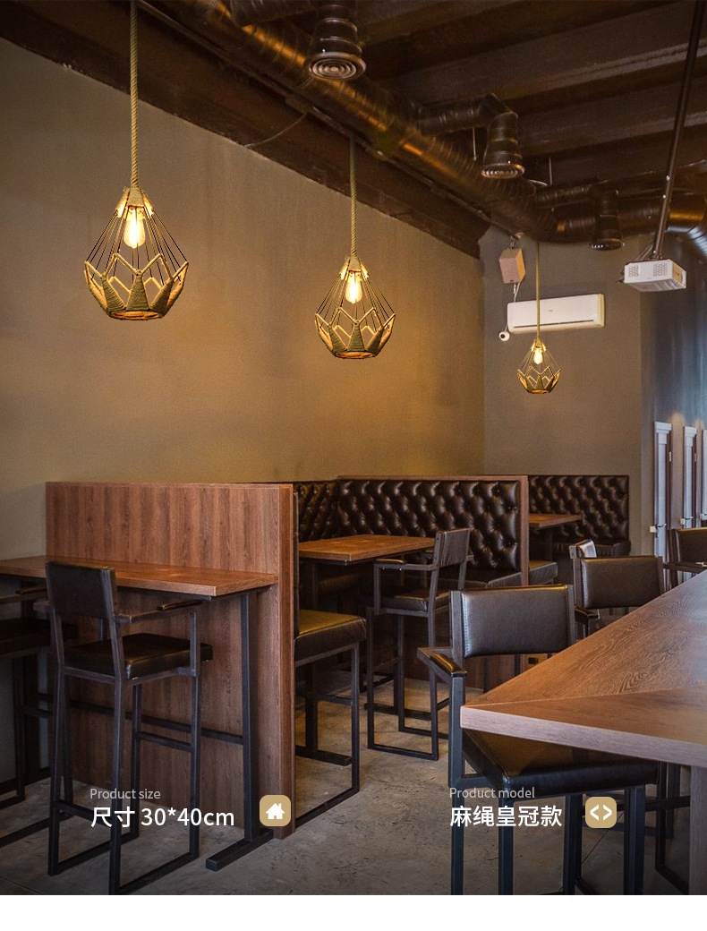 chandelier shop commercial hemp rope lamp vintage industrial style single head aisle corridor restaurant clothing store lamps wholesale