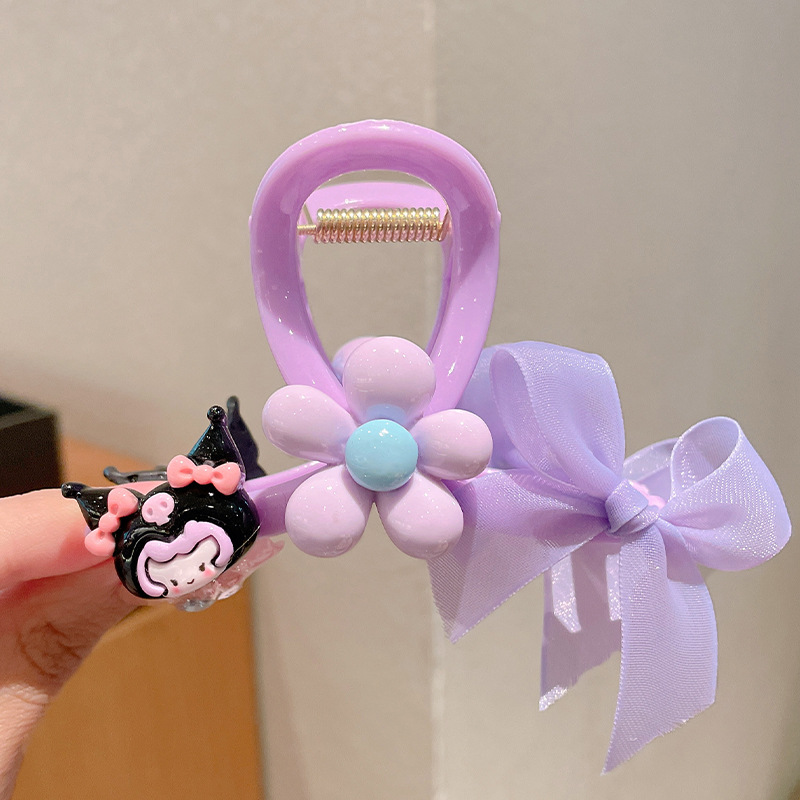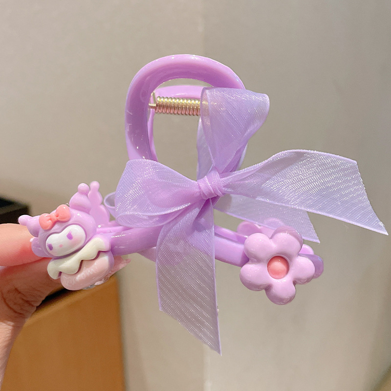 purple clow m flower gauze bow claw clip