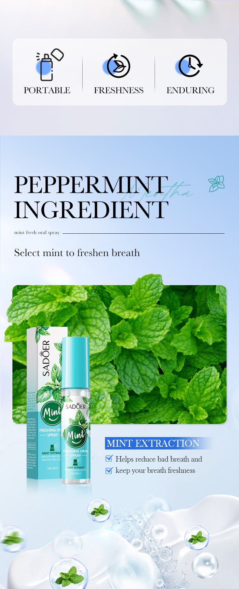 Full English Spray Sadoer Fresh Breath Mint Fresh Oral Spray Cross-Border Foreign Trade Factory Direct Sales