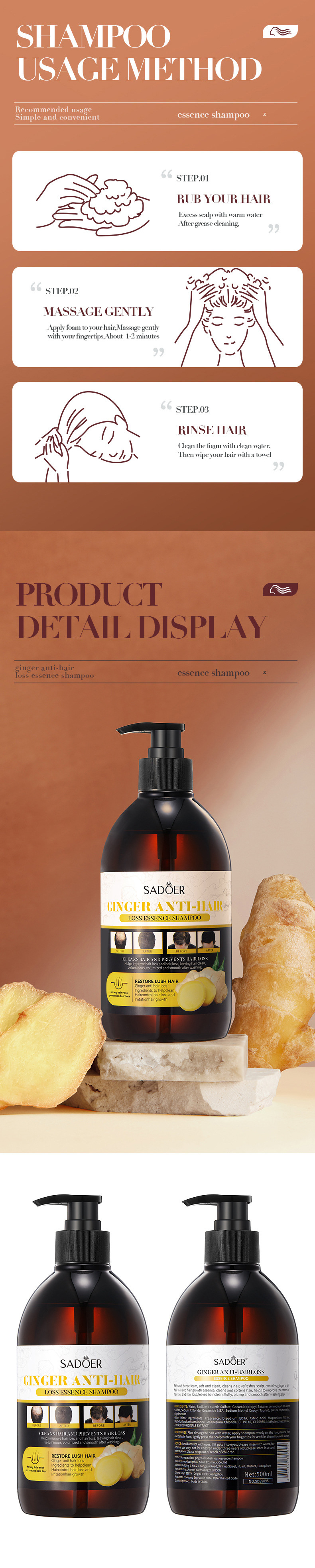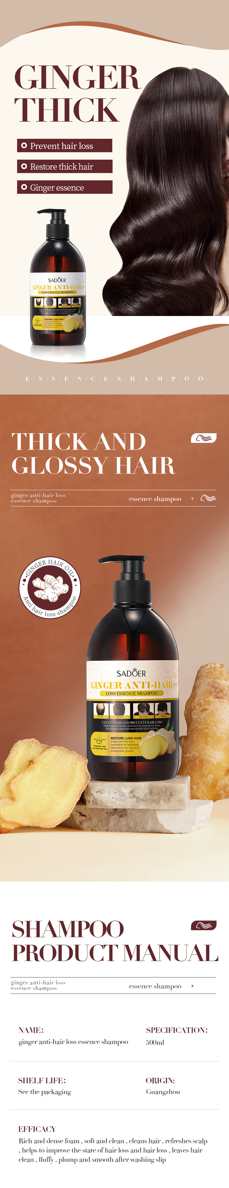 English Hair Conditioner Sadoer Ginger Hair Conditioner Moisturizing Shampoo Cross-Border Foreign Trade Factory Direct Sales