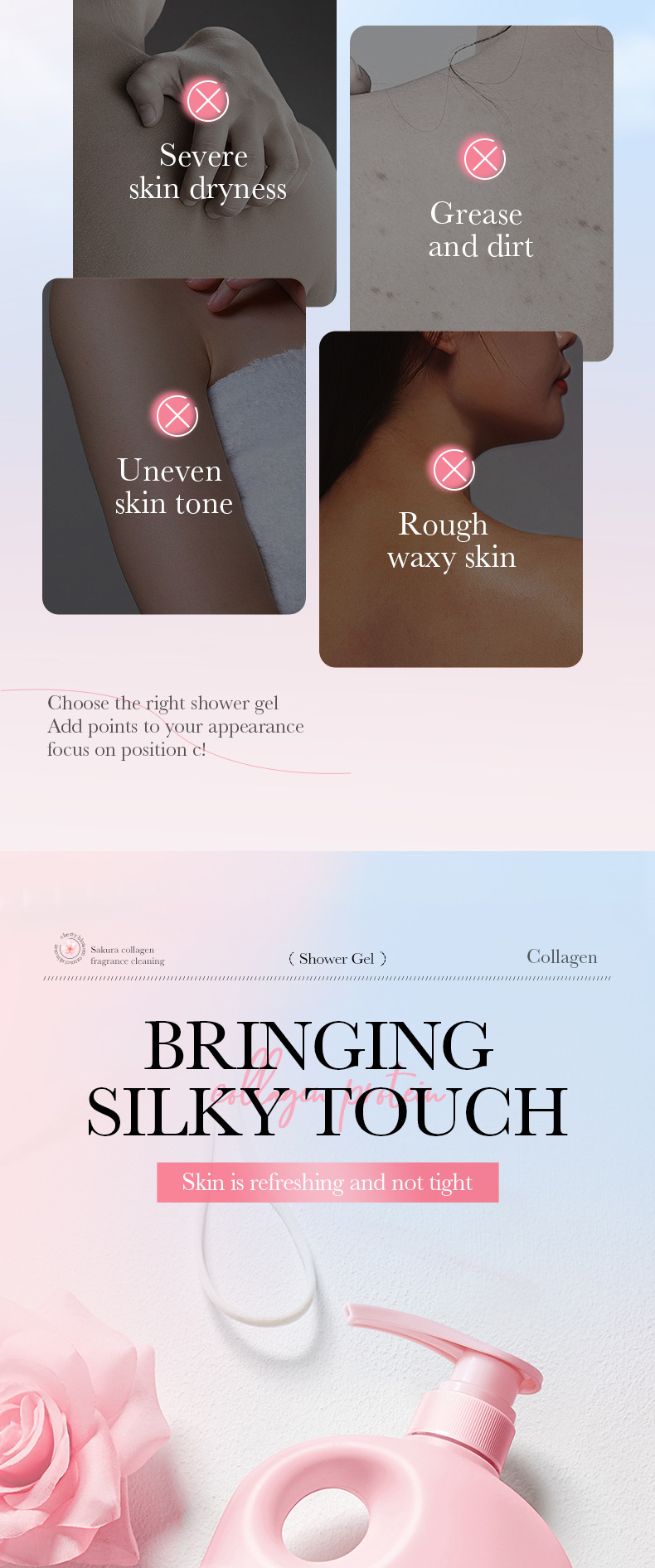 english shower gel sadoer cherry blossom collagen fragrance skin beauty bath lotion cross-border foreign trade factory direct sales