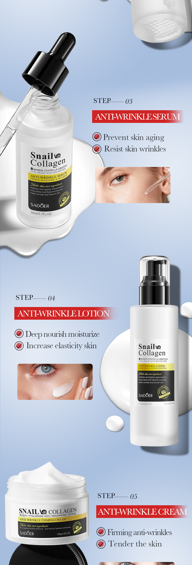 english skin care set sadoer snail collagen anti-wrinkle skin care products cross-border foreign trade factory direct sales