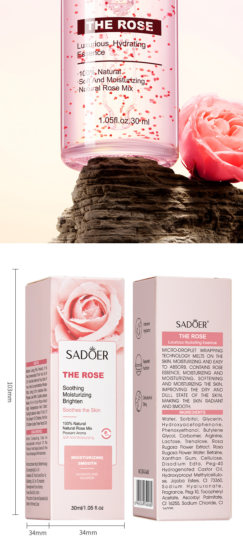 Full English Essence Sadoer Moisturizing Bright Aloe Luxury Water Bank Essence 30ml Cross-Border Foreign Trade Factory Direct Sales