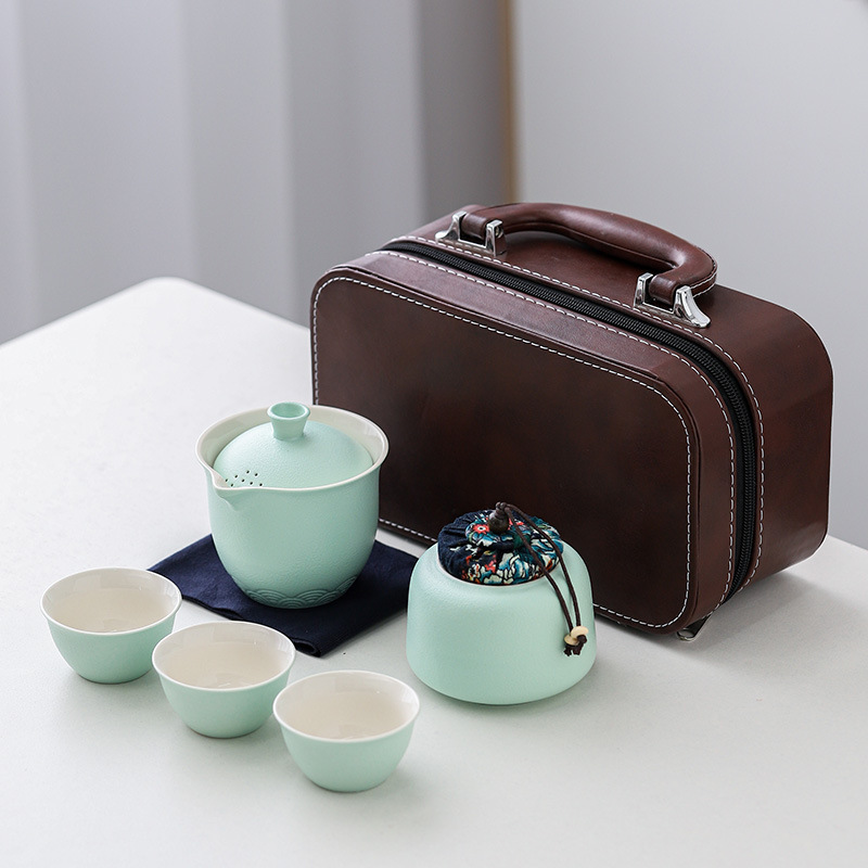 lb color cyan tea set 1 pot 3 cups