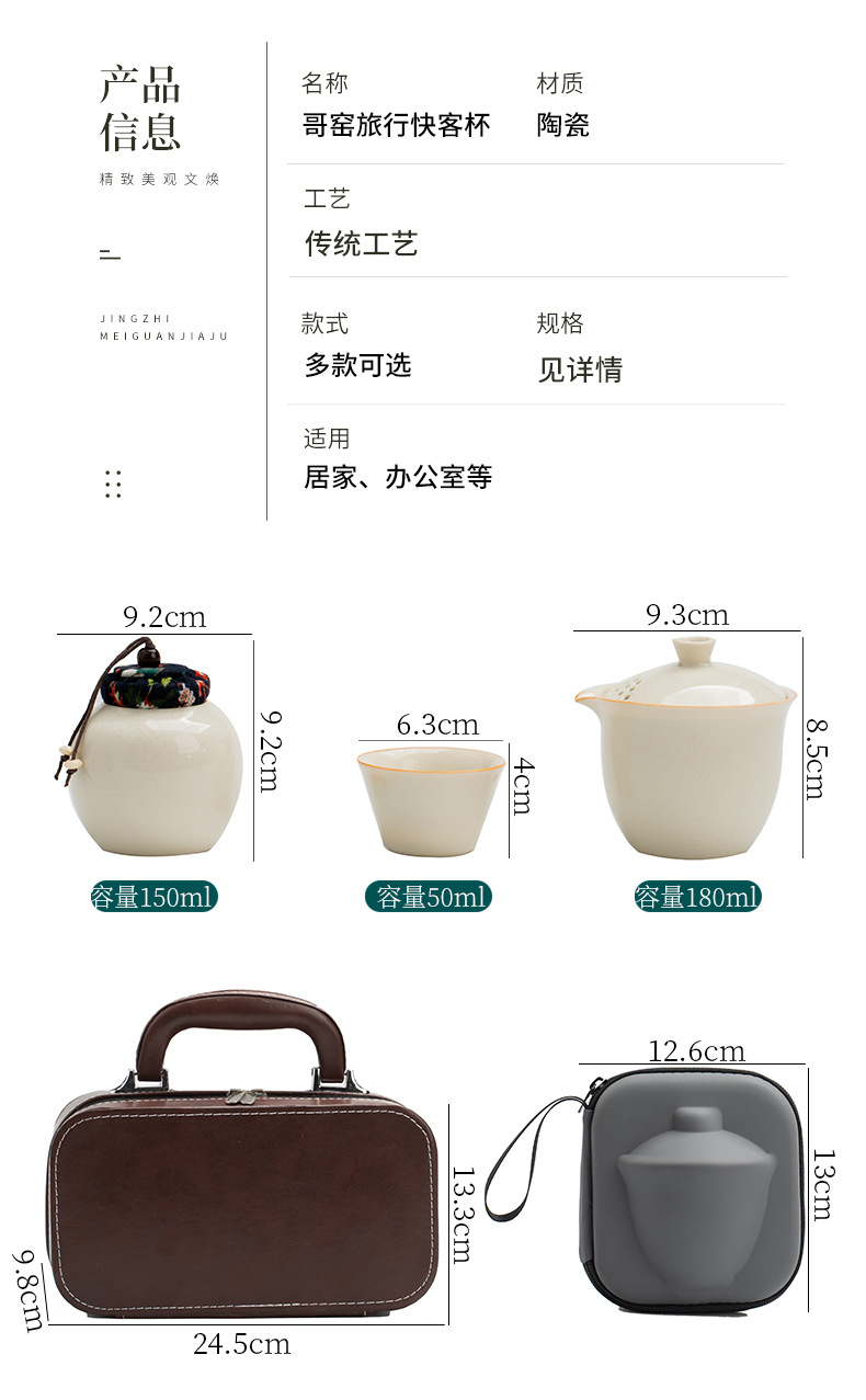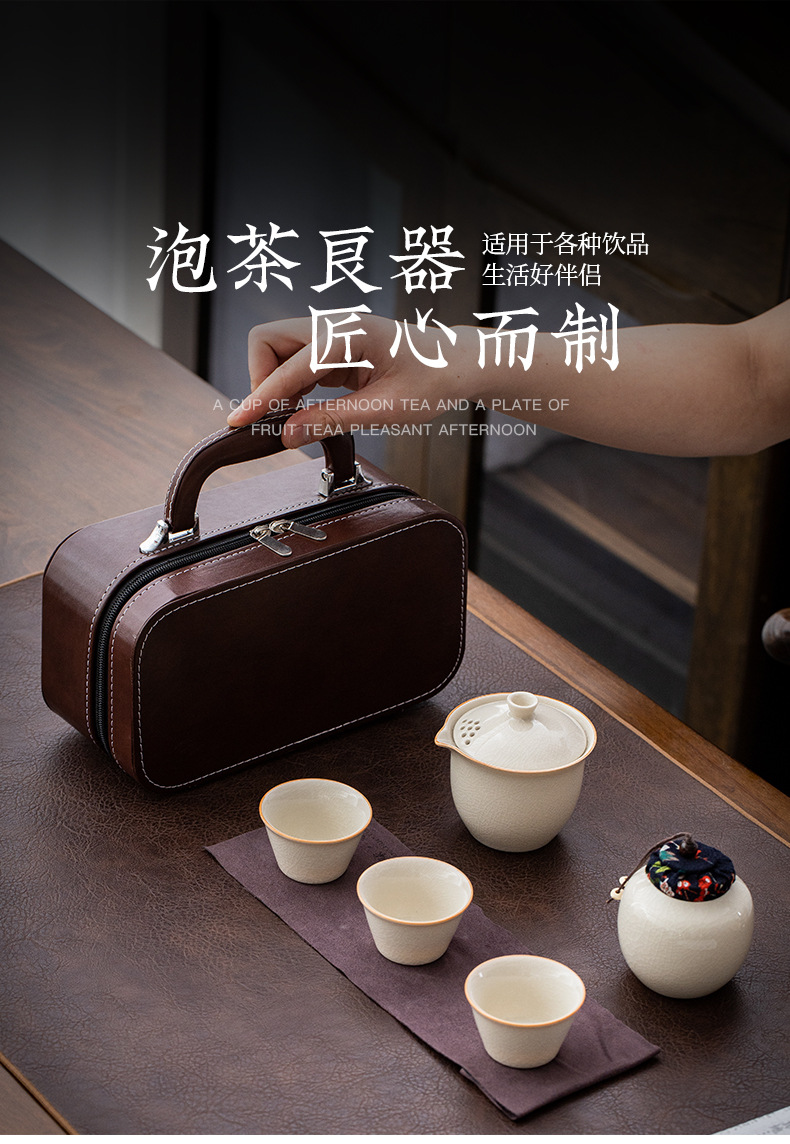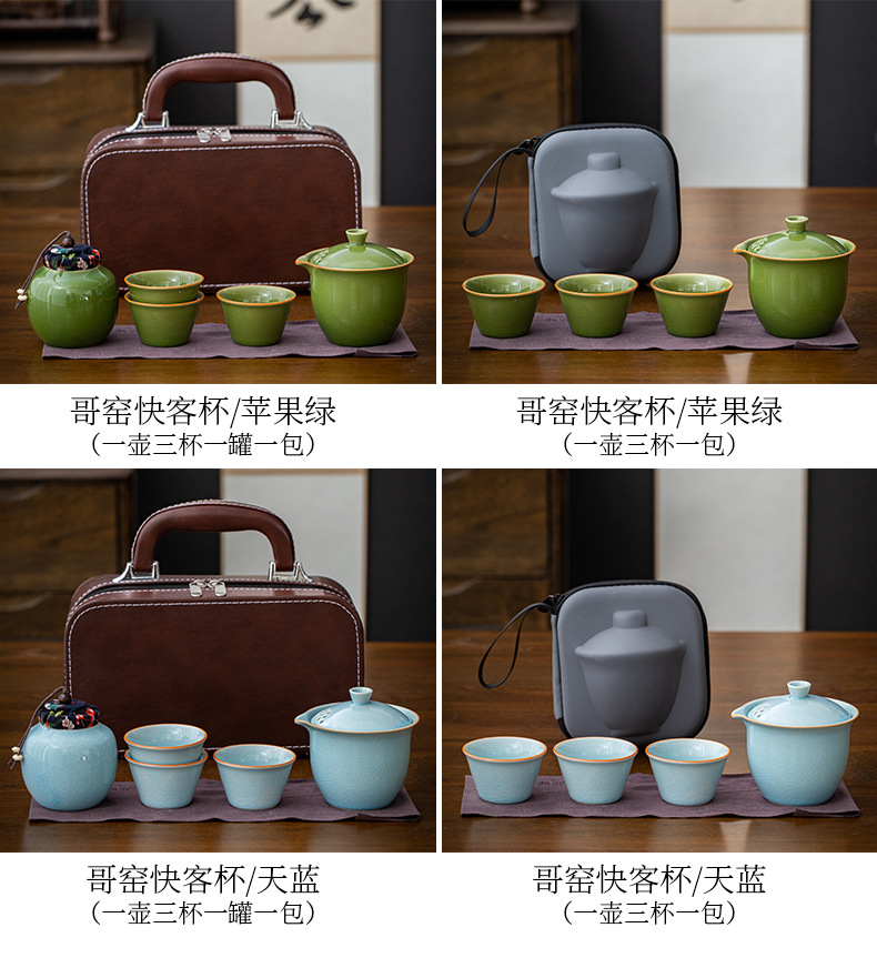 travel tea set 3 cups-xuan elegant green [portable bag]]