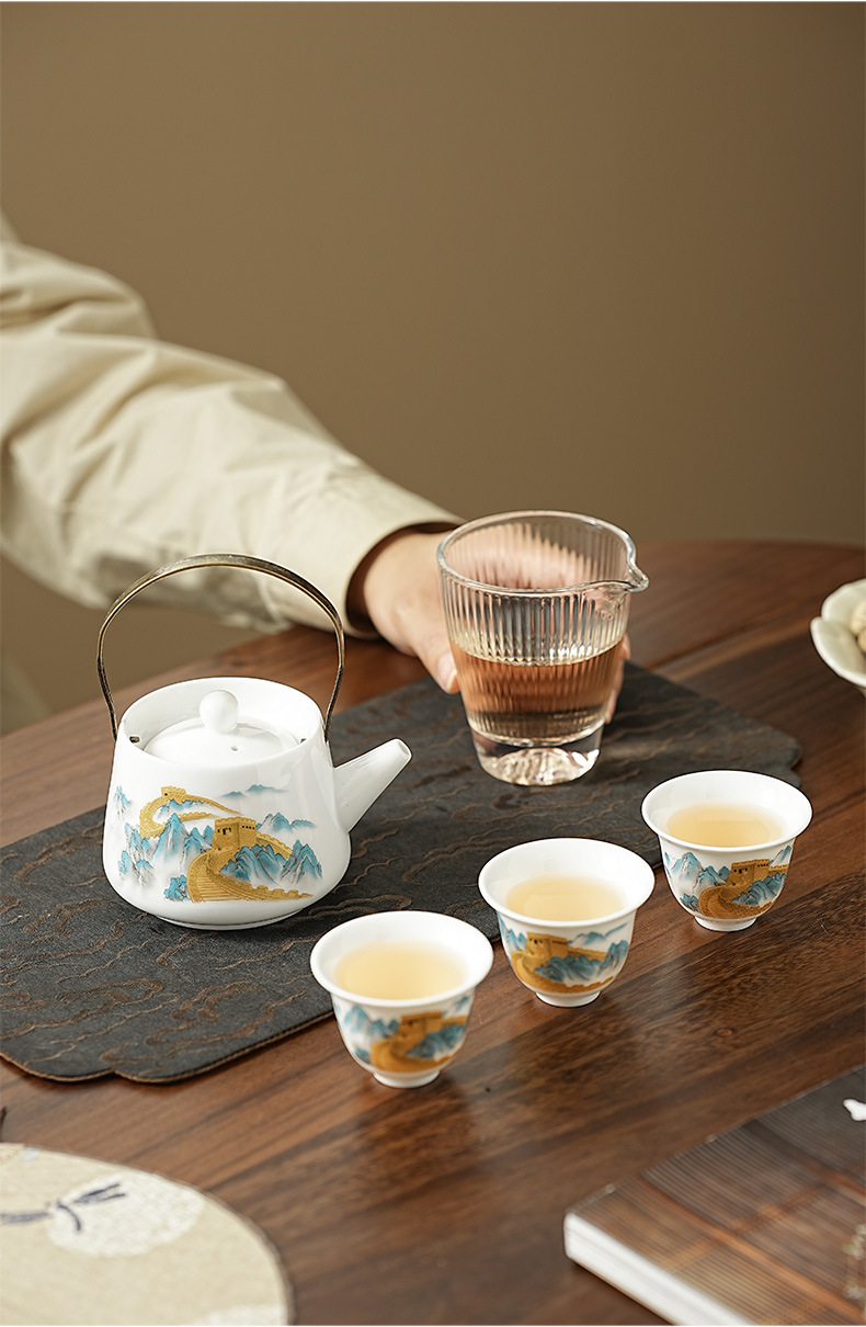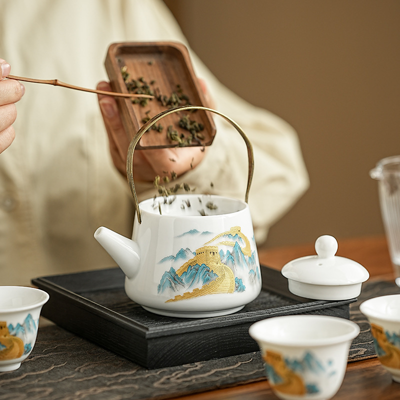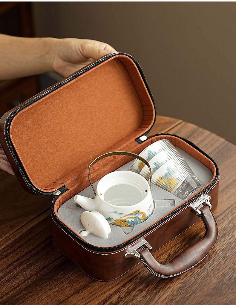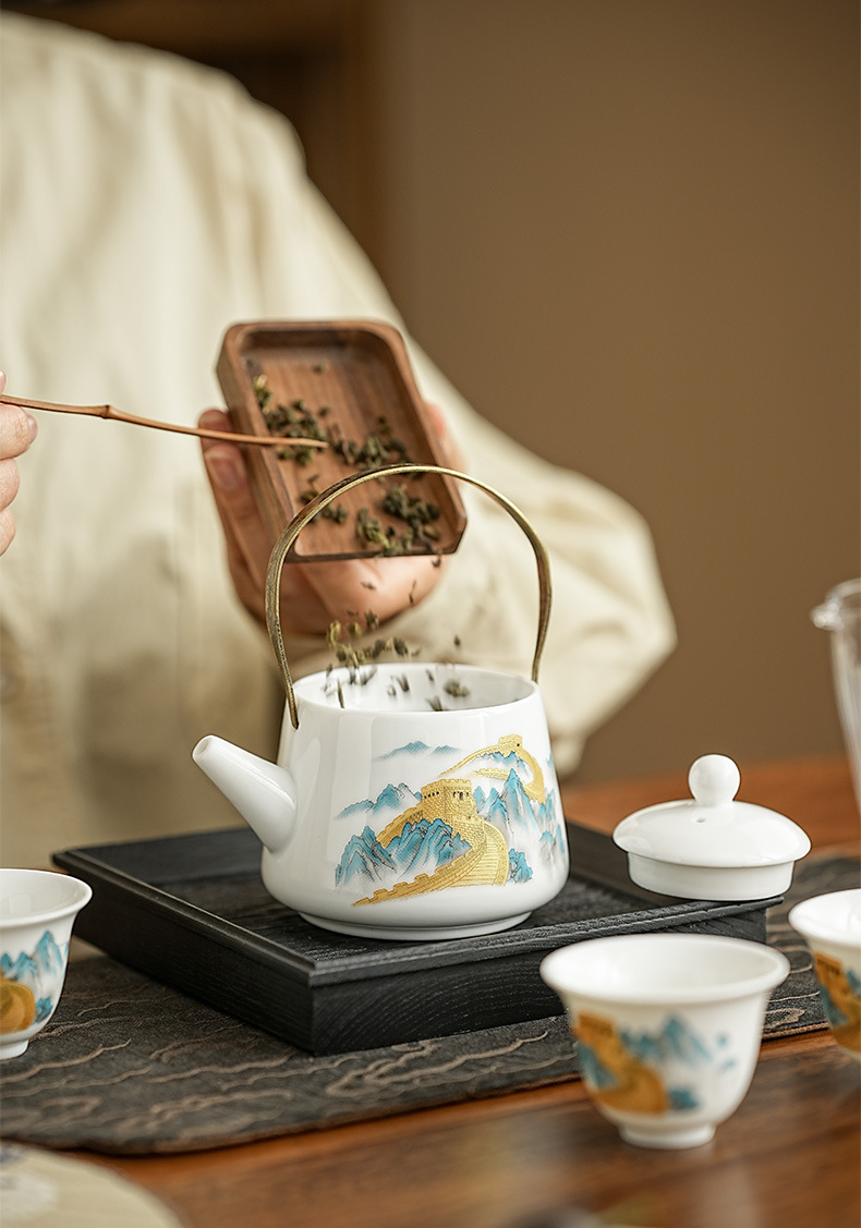 wanfeng white jade-loop-handled teapot/great wall [brown leather bag]]