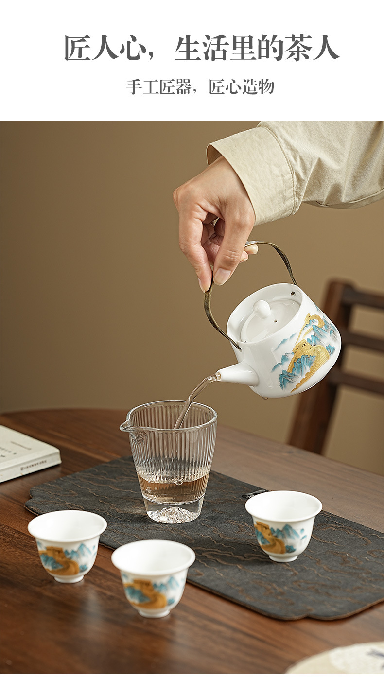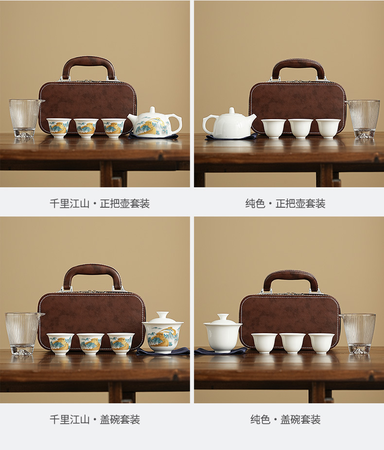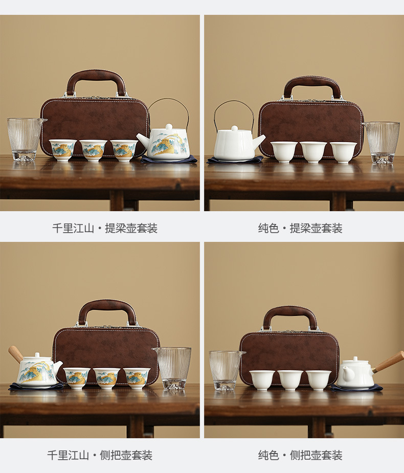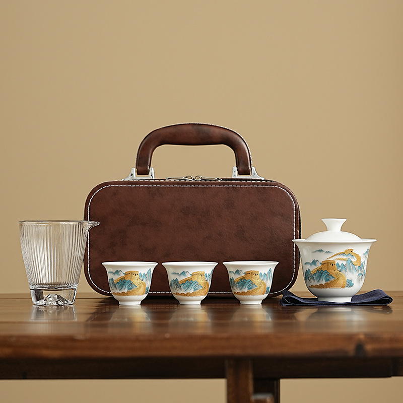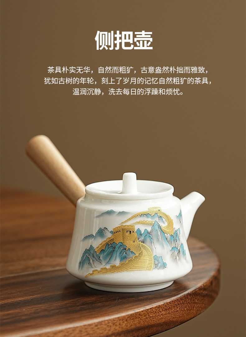 wanfeng white jade-loop-handled teapot/great wall [brown leather bag]]