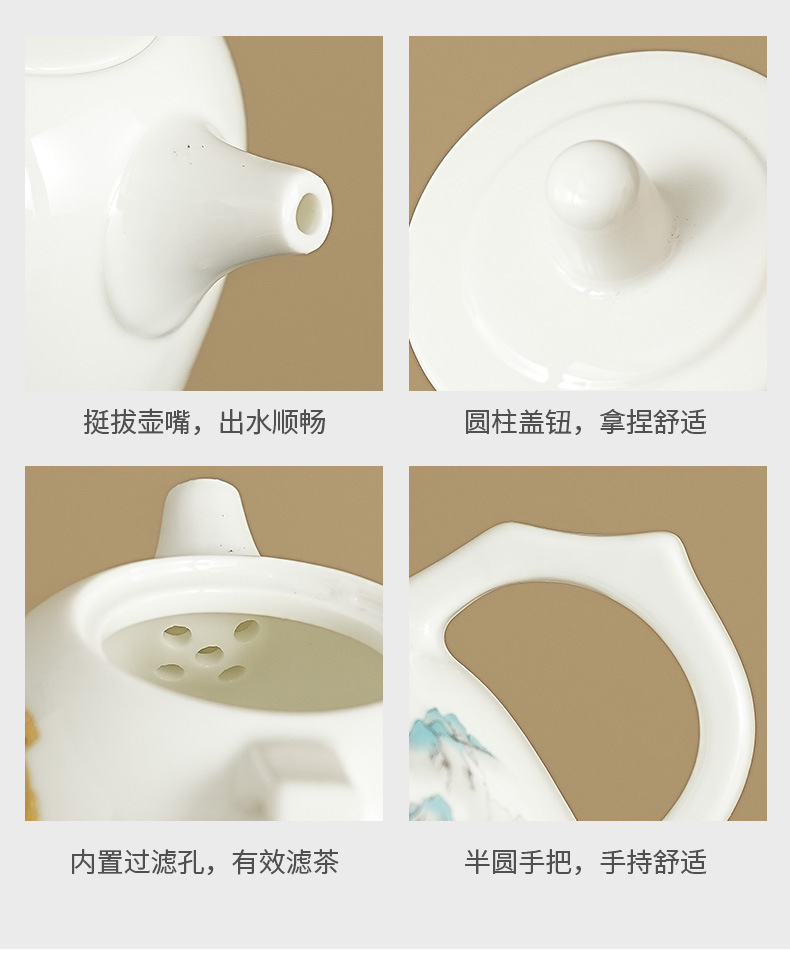 wanfeng white jade-loop-handled teapot/pure white [brown leather bag]]