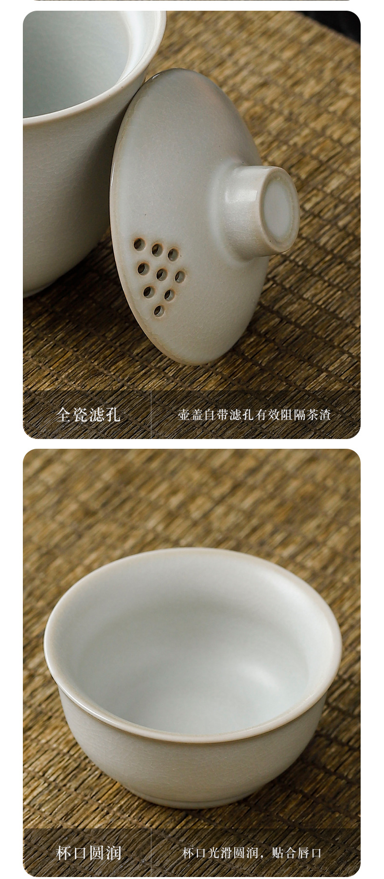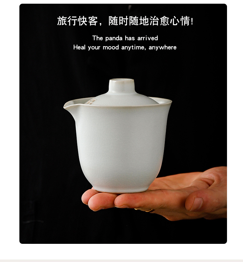 tasting ru kiln convenient tea cup set 3 cups/moon white [small gray bag]]