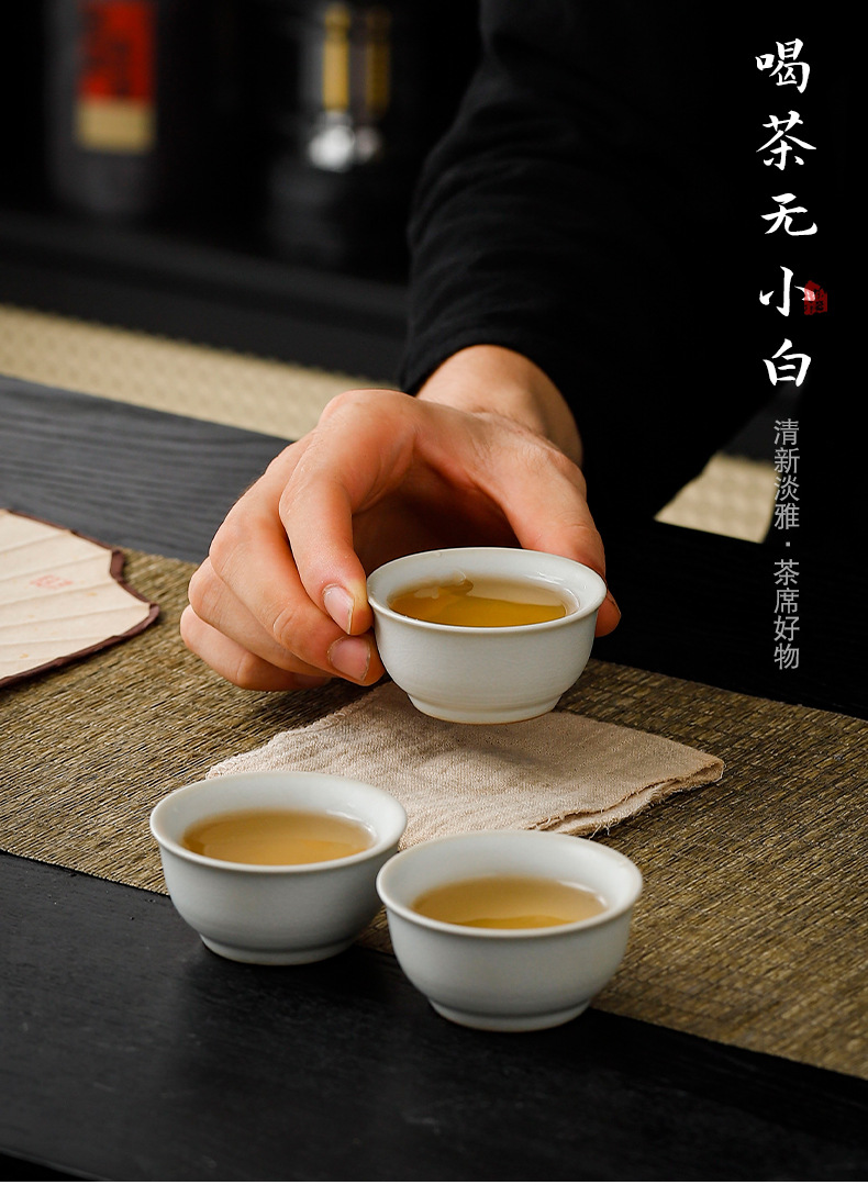 tasting ru kiln convenient tea cup set 3 cups/moon white [transparent bag]]