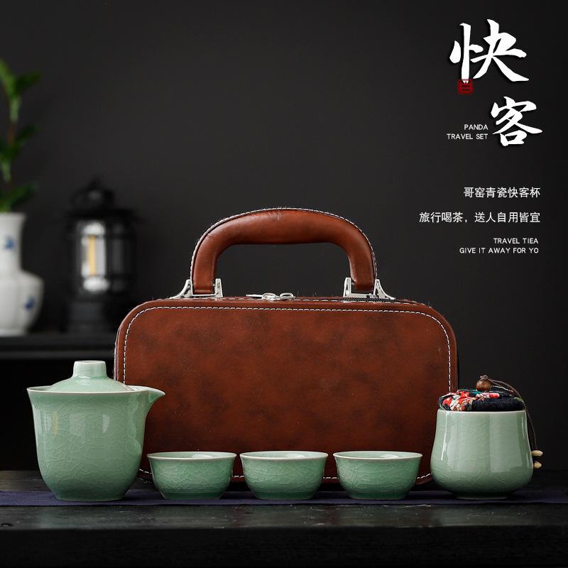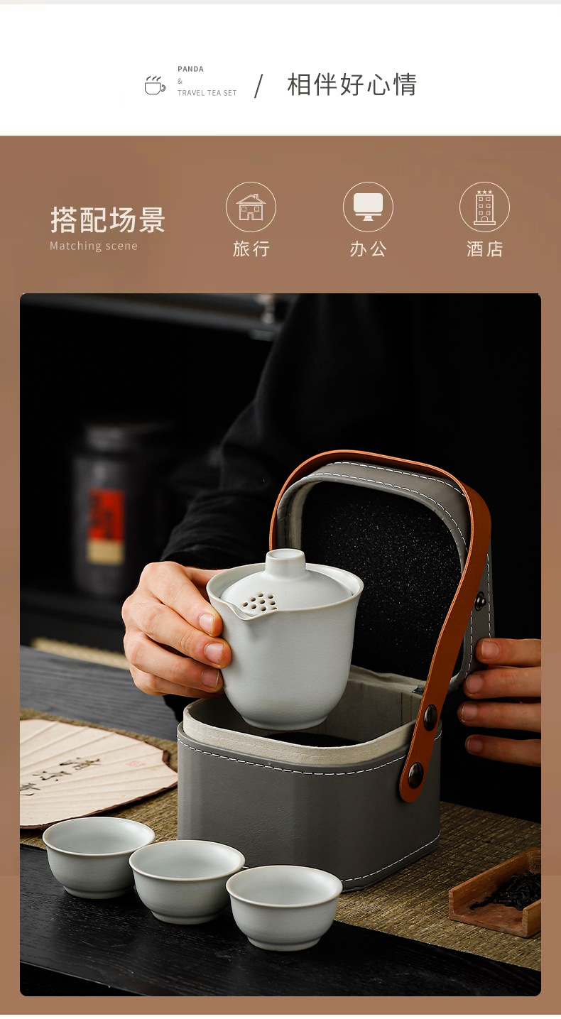 tasting ru kiln convenient tea cup set 3 cups + cans/moon white [brown leather bag]]