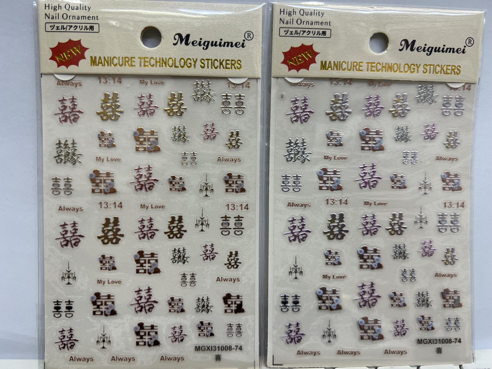 rose nail art japanese 3d nail adhesive backing stickers double happy character nail art gold silver rose gold silver stickers decoration stickers