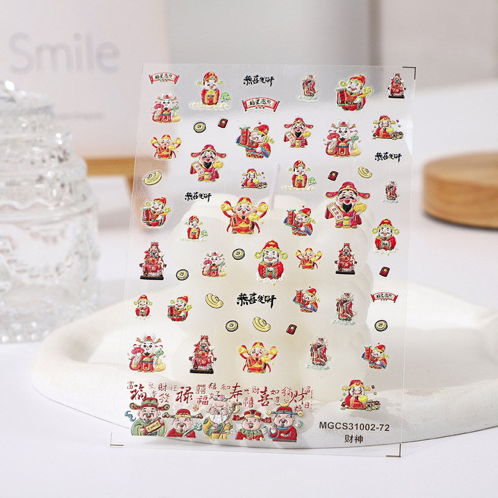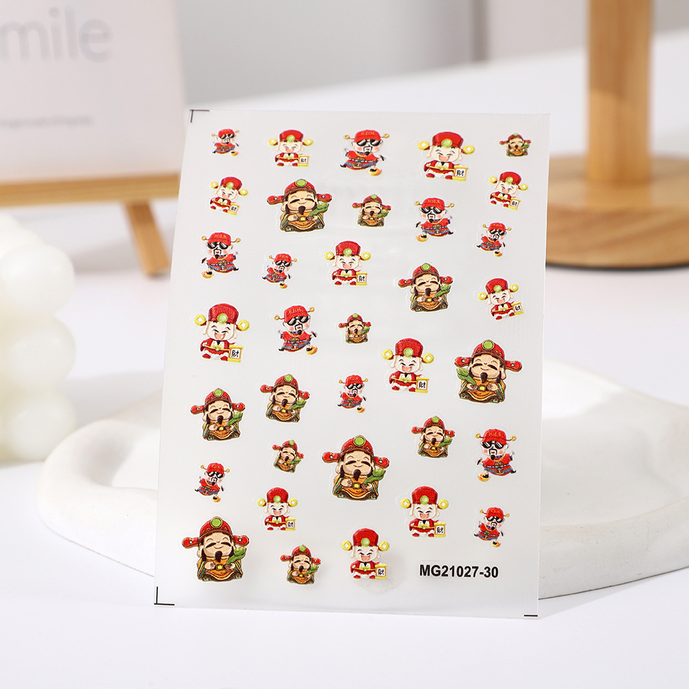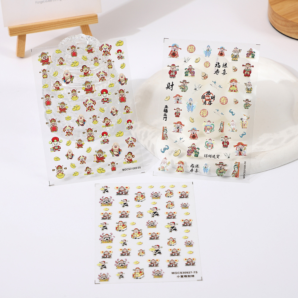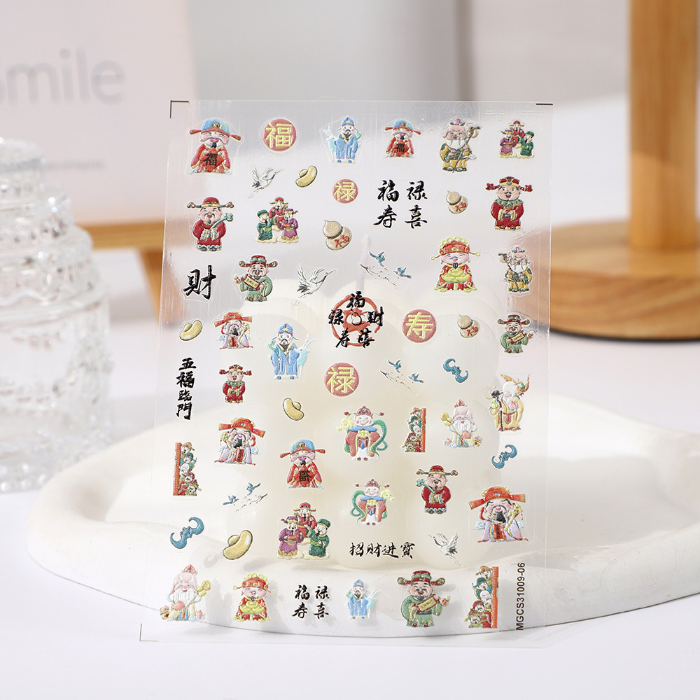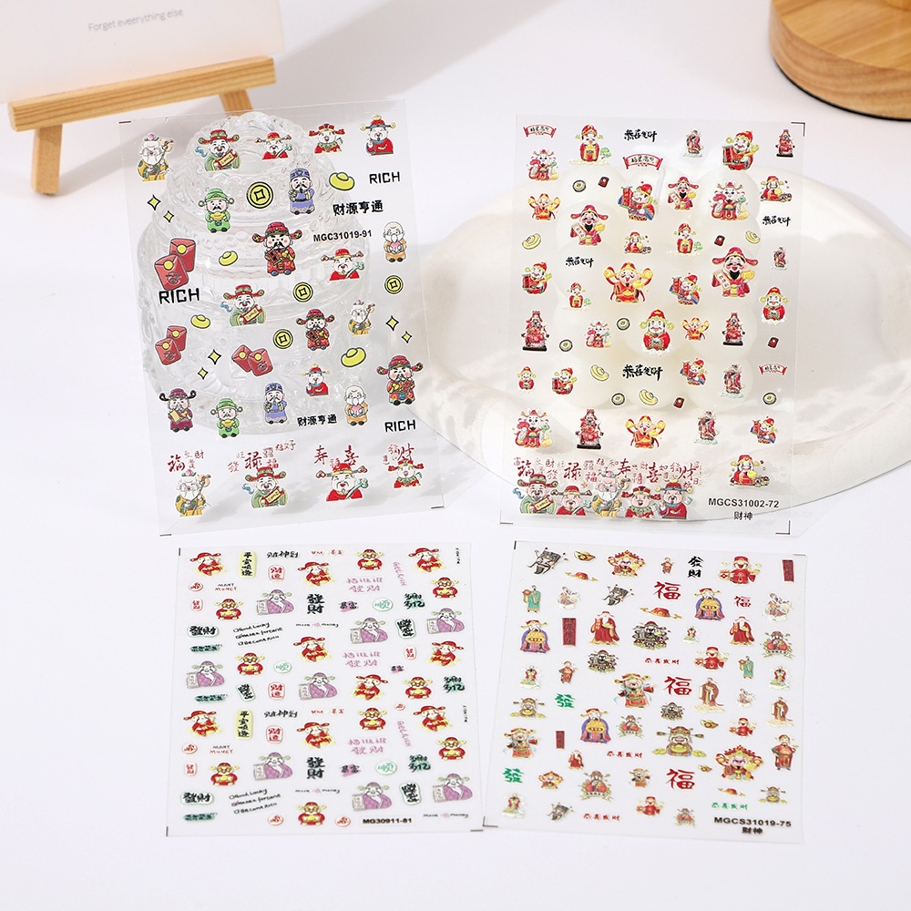 rose nail art 2024 new year god of wealth japanese style nail beauty stickers decorations lion dance xingshi fortune spring festival decals
