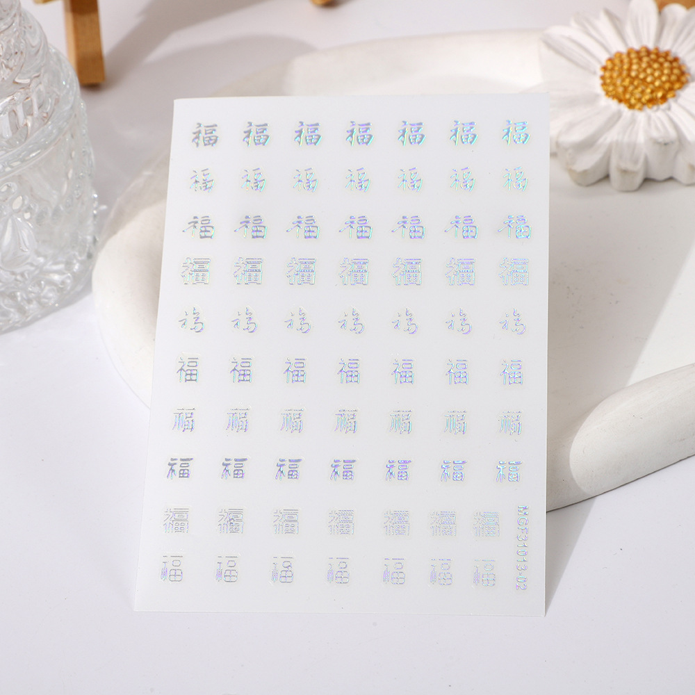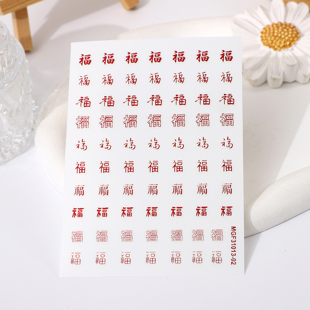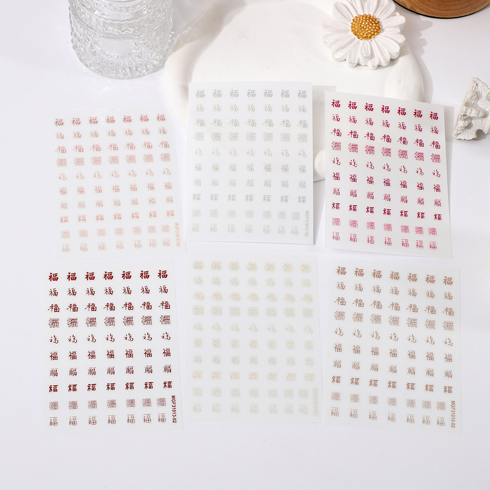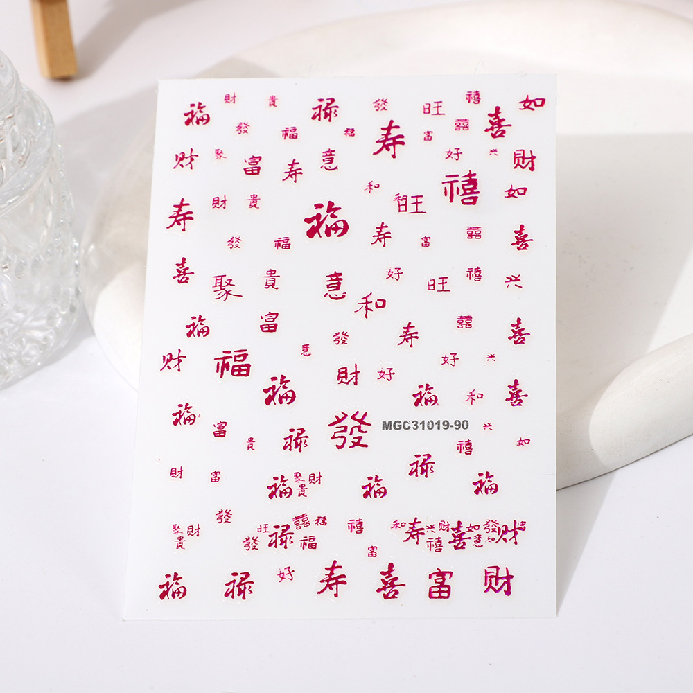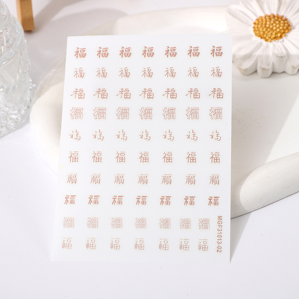 rose nail art day new hot stamping gold and silver color new year's fu character nail art stickers xi character line stickers