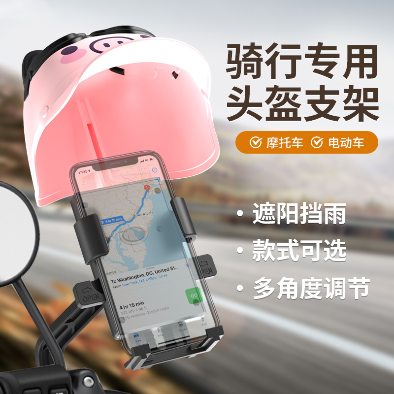 pink pig small helmet mobile phone bracket-mirror seat