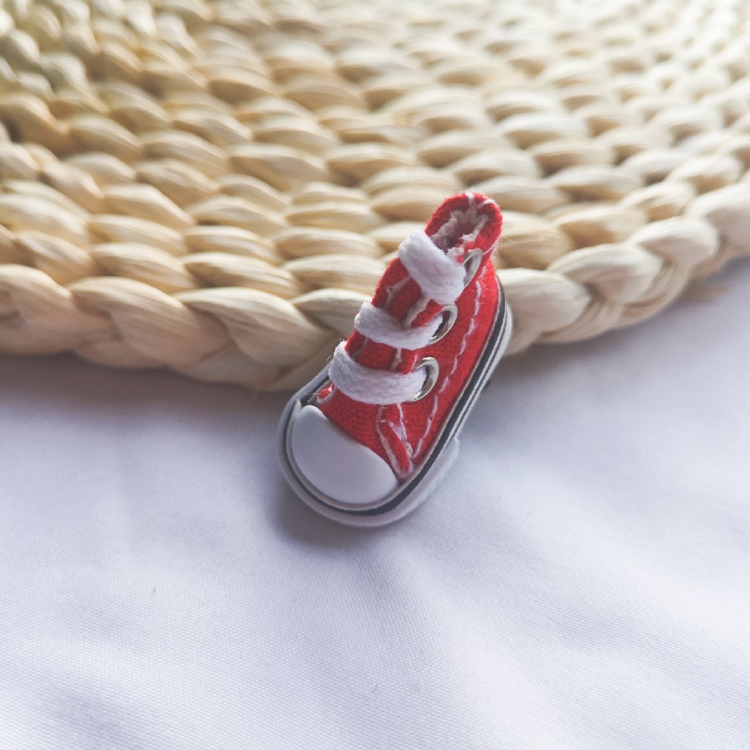 single red canvas shoes brooch