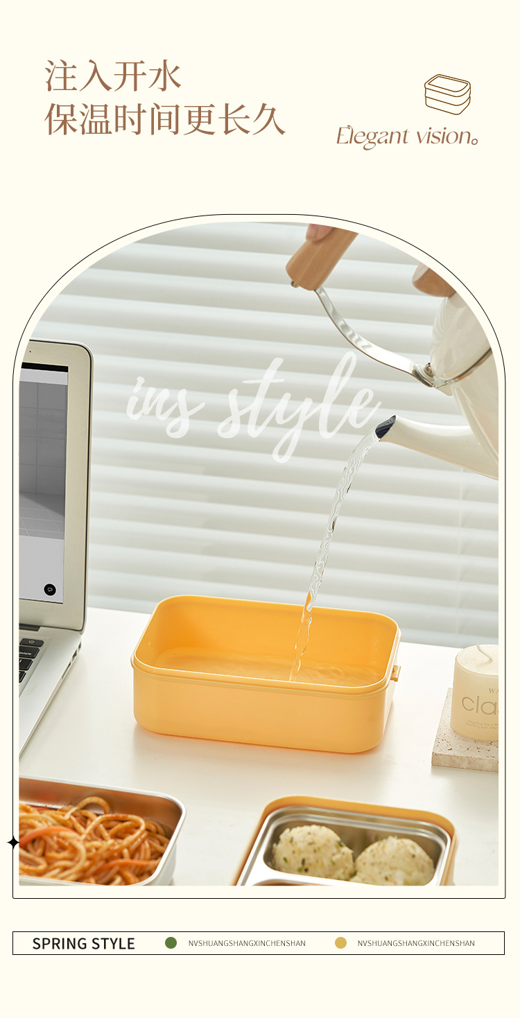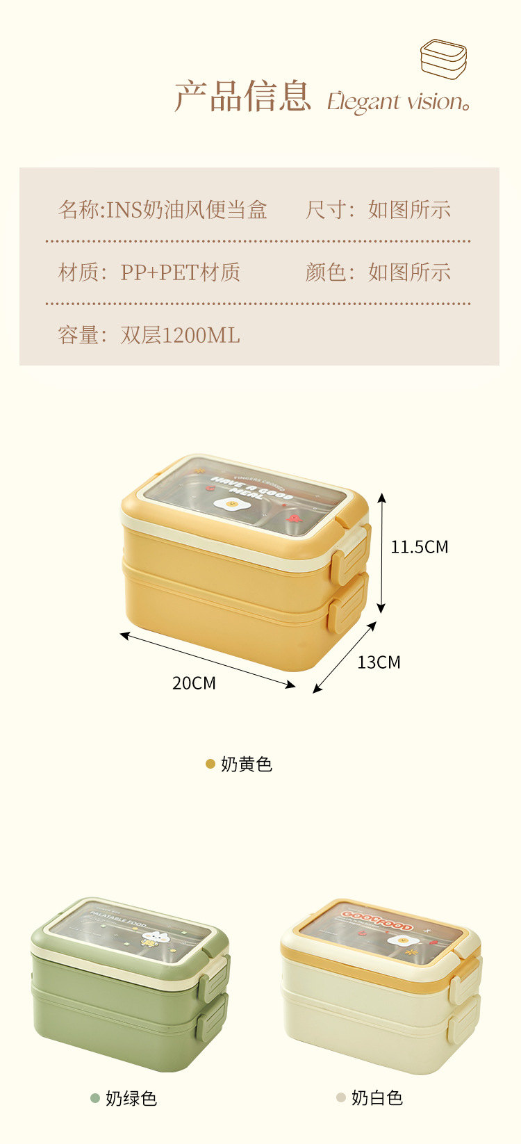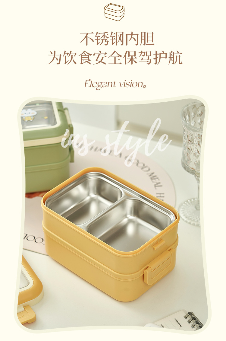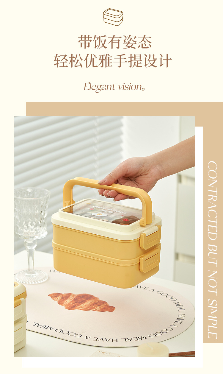 cream yellow double layer lunch box