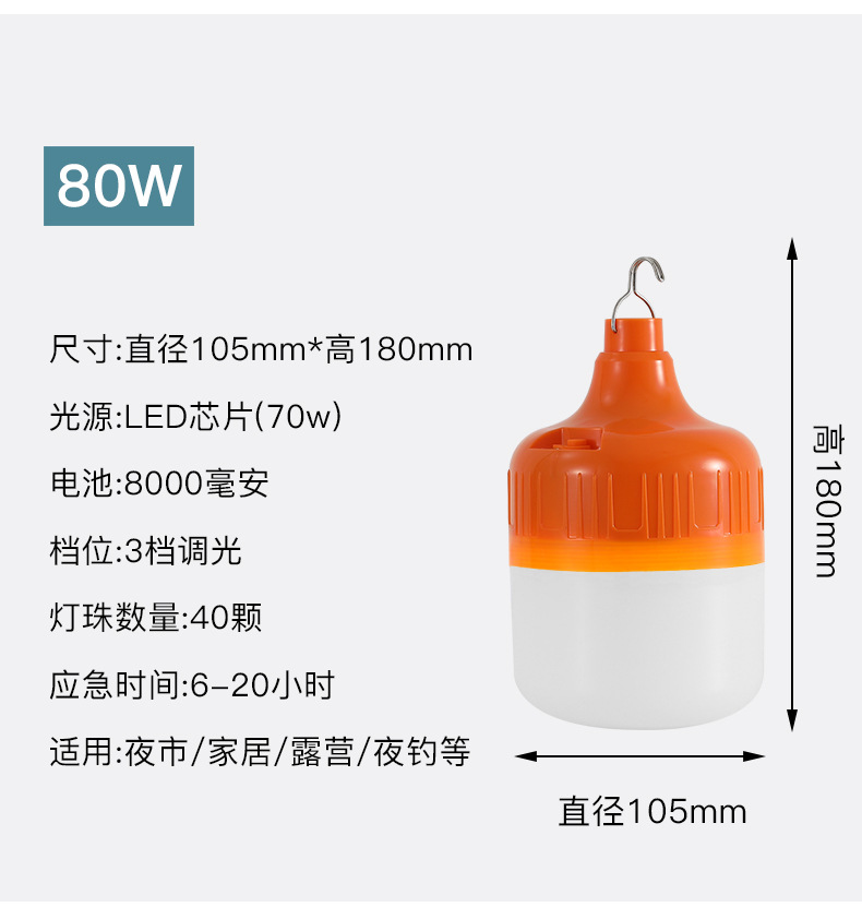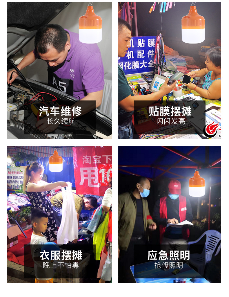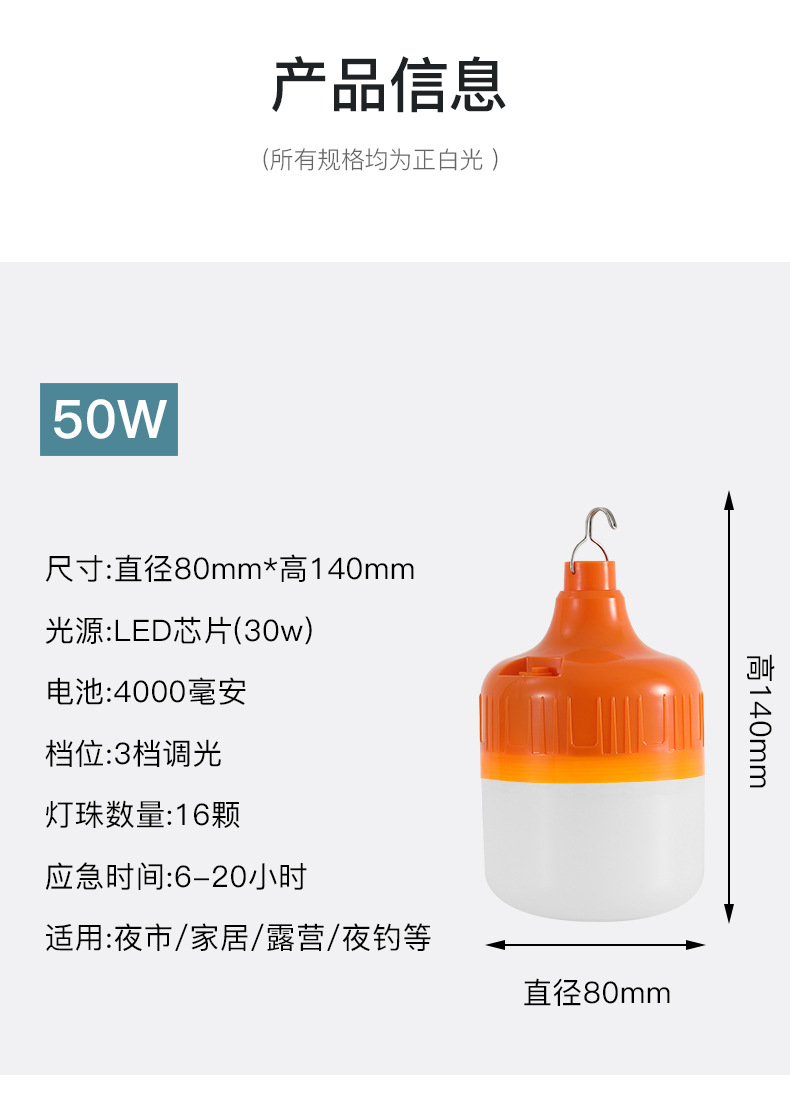 led chargeable light emergency bulb outdoor camping night market lighting stall waterproof usb charging emergency bulb