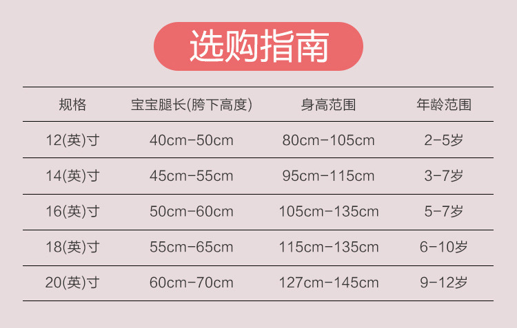 | 14-inch suitable height (90-105) cm | CN¥ 267.0 | 1000 piece available |