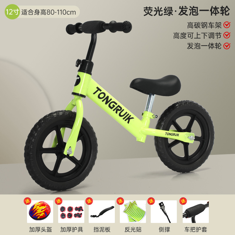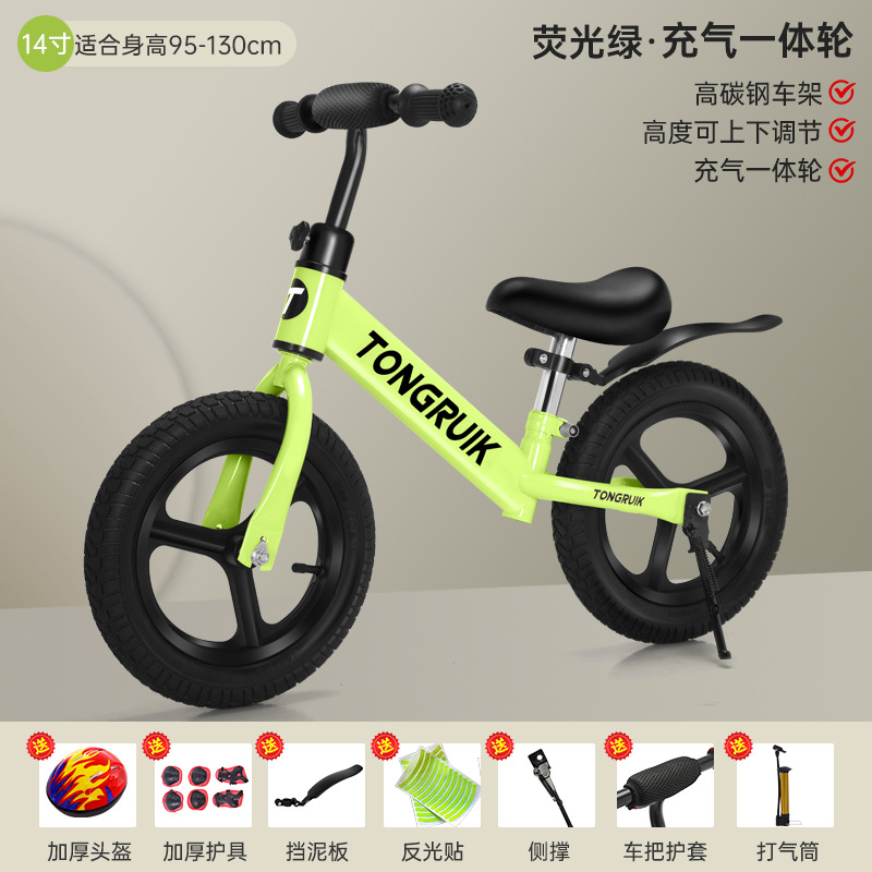 green 12-inch rubber pneumatic wheels 2-6 years old gift bag with protective gear