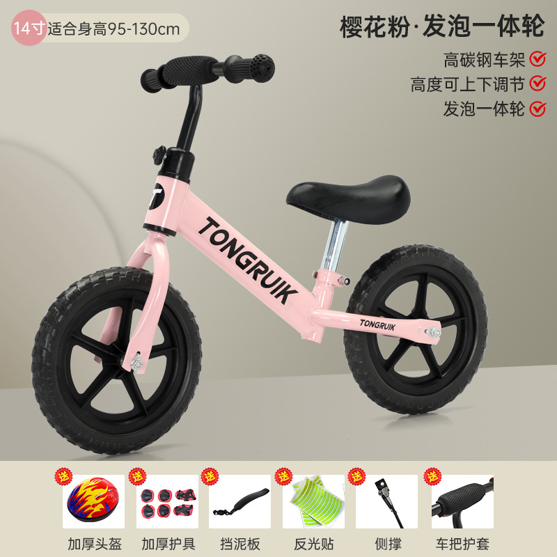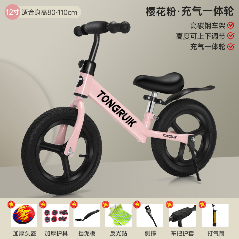 pink 12-inch rubber pneumatic wheels 2-6 years old gift bag with protective gear