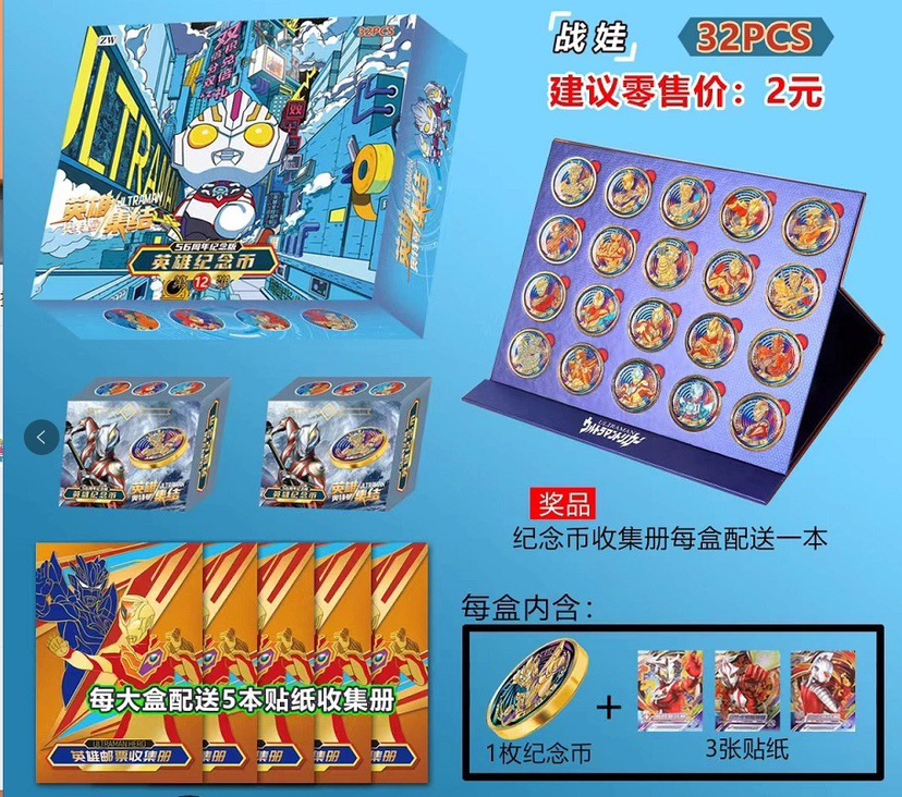 ultraman 3.5cm commemorative coin [32 small boxes in the whole box] send 1 coin collection book +5 stamps
