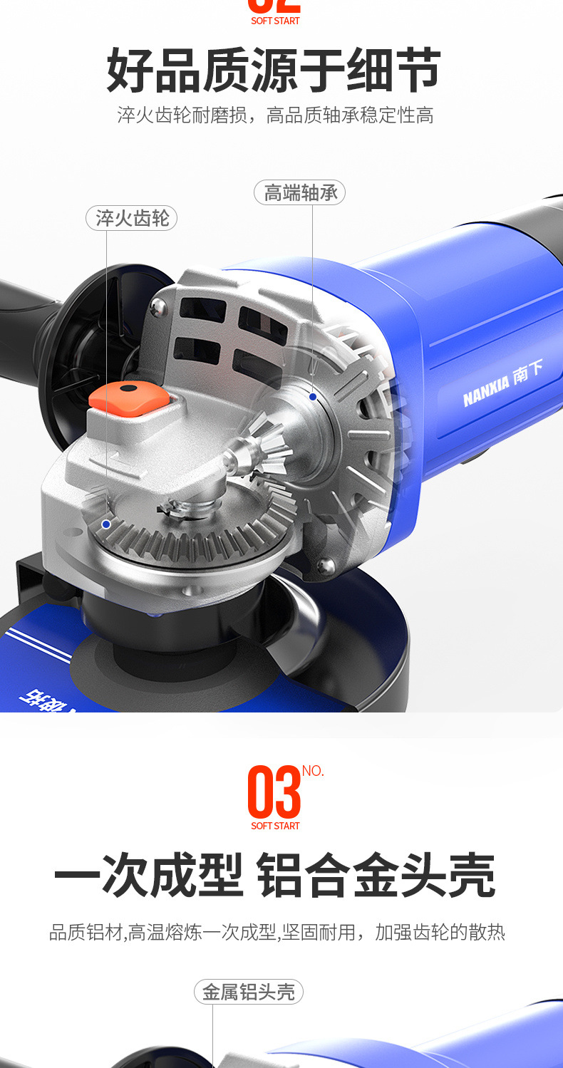 six-speed speed control [stop when you release] + cutting and grinding saw blade