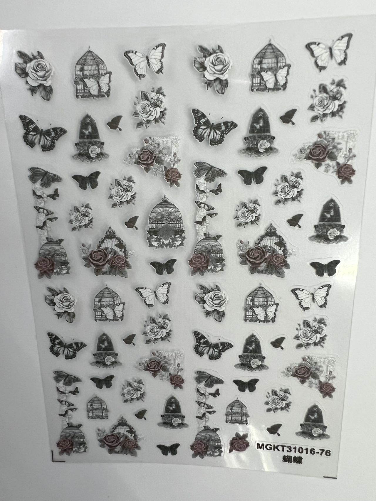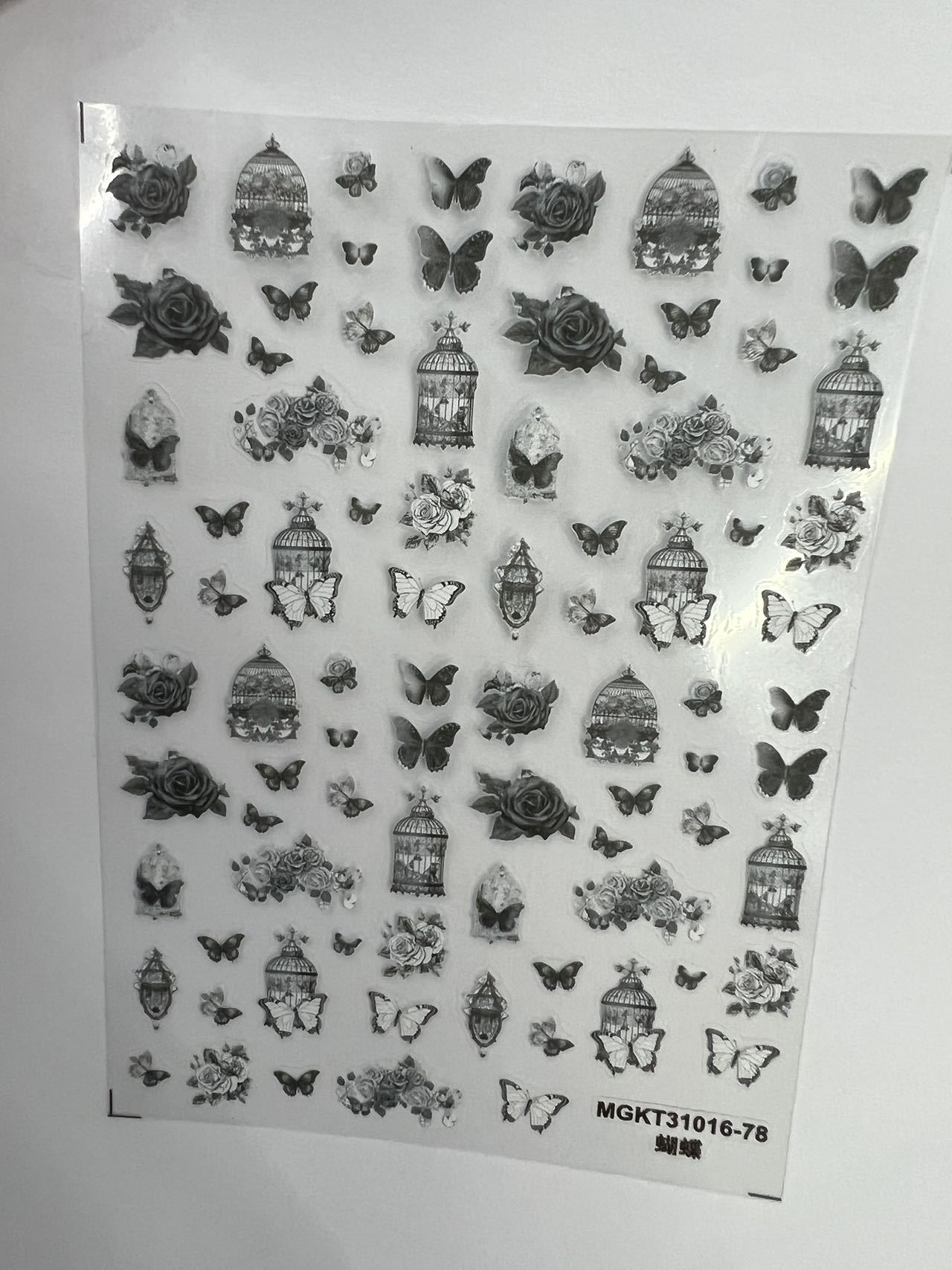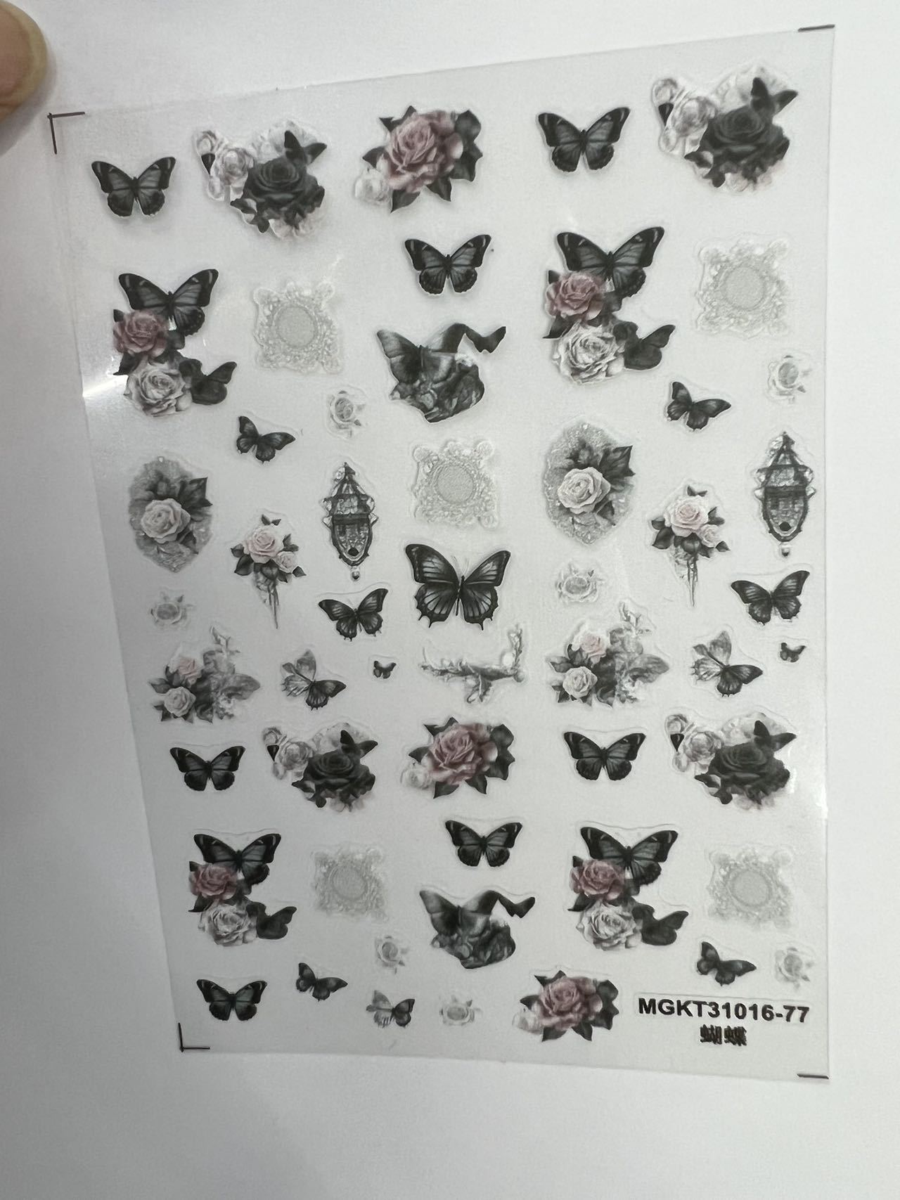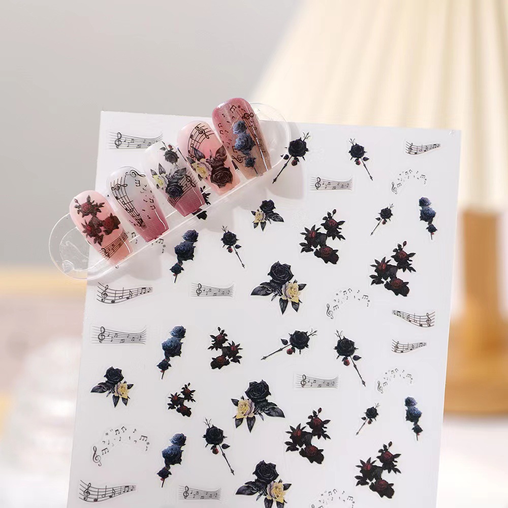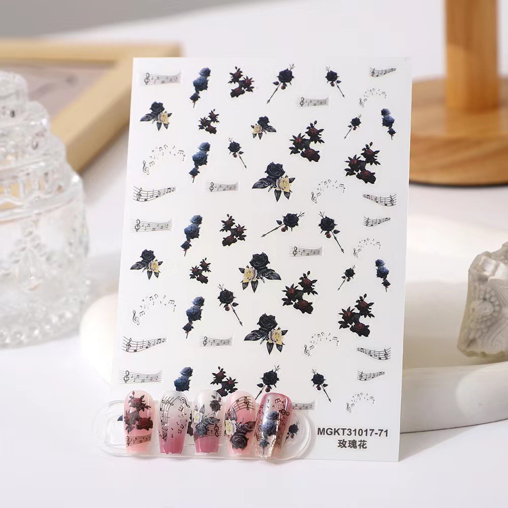 rose nail art three-dimensional relief dark butterfly illustration nail stickers paper rose bohemian butterfly flame spider