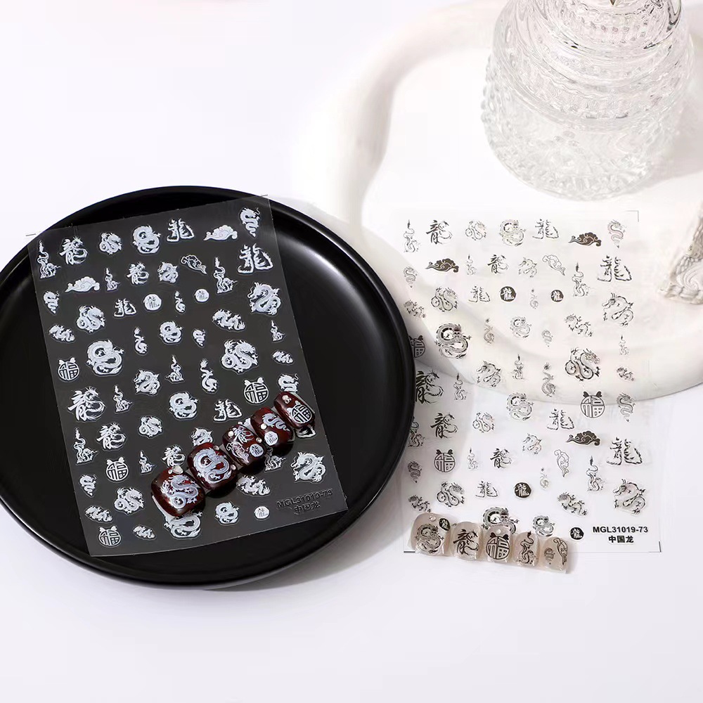 rose nail art three-dimensional relief medium-sized fruit dragon cloud pattern new national style nail stickers streamers adhesive