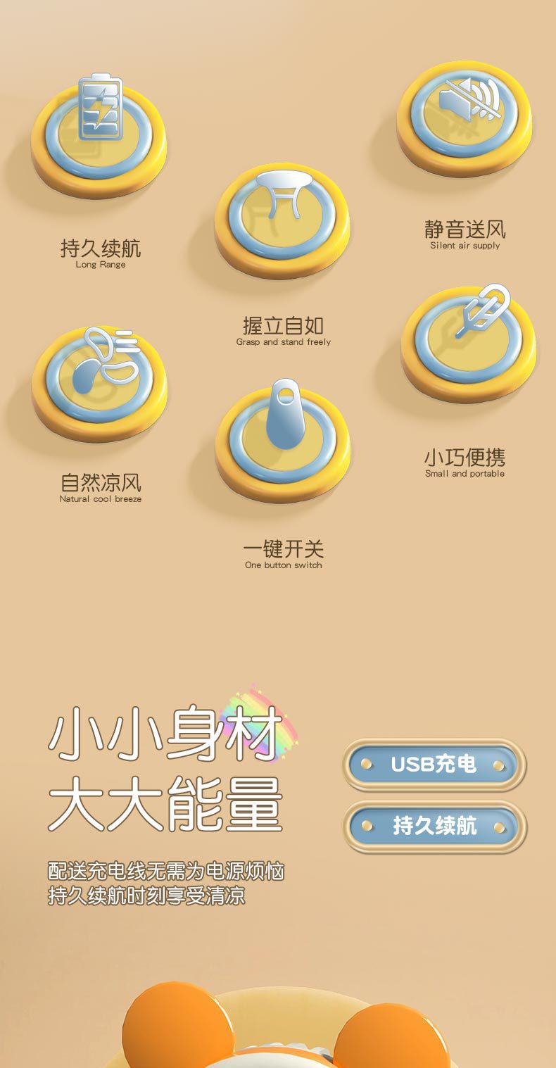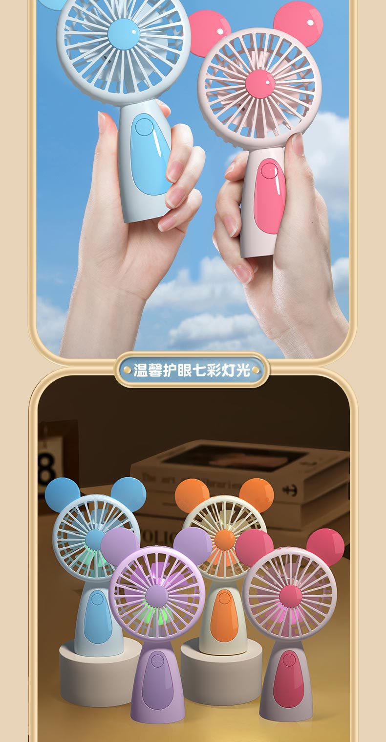 Cartoon USB Charging Fan with Multicolor Lights