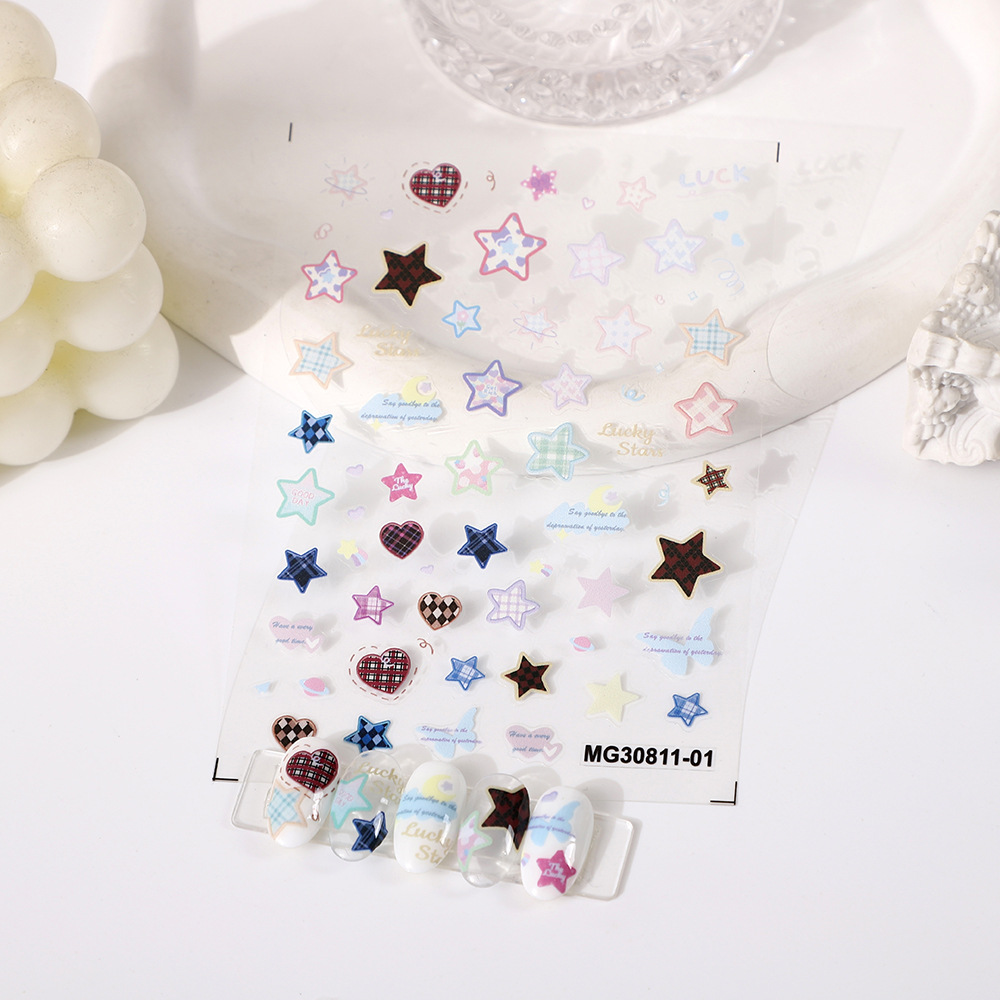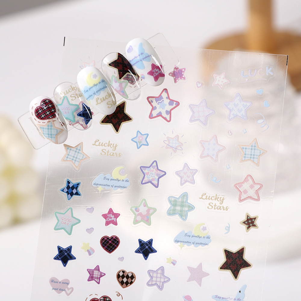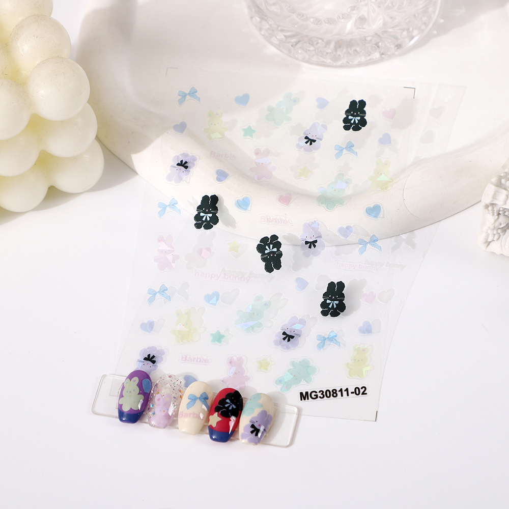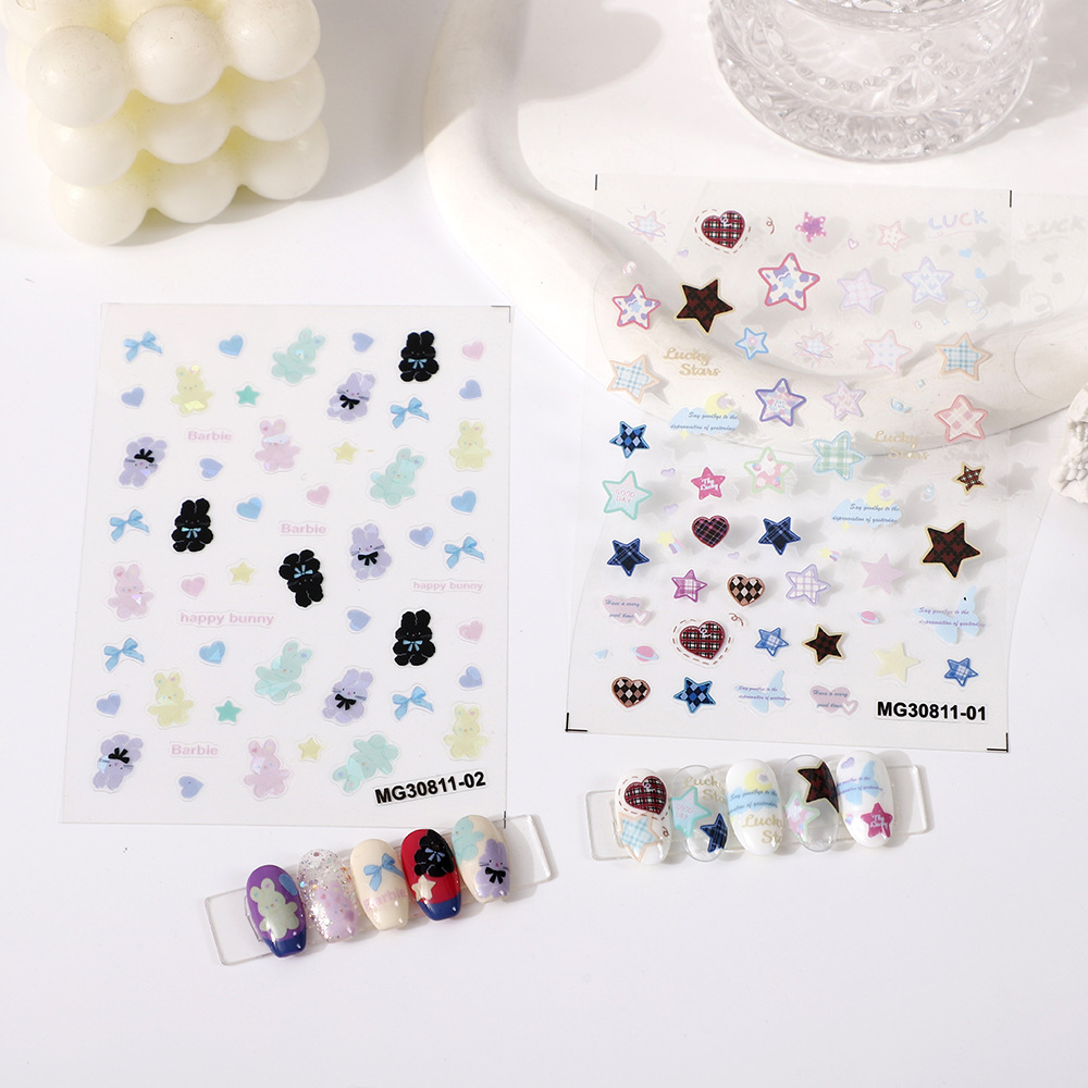 2023 internet celebrity streamer colorful laser fairy xingx bear black pattern nail sticker decorations pattern nail