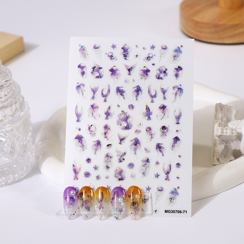 rose manicure japanese dream purple jellyfish fishtail nail sticker new craft gradient purple color bow sticker