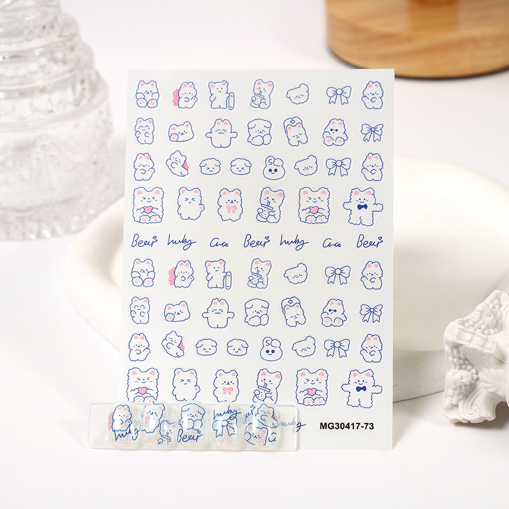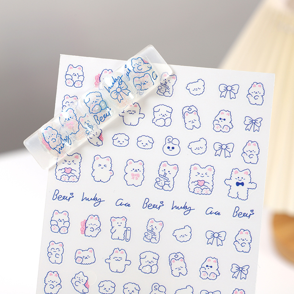 rose manicure japanese stickers same line blue bear empty nail beauty applique
