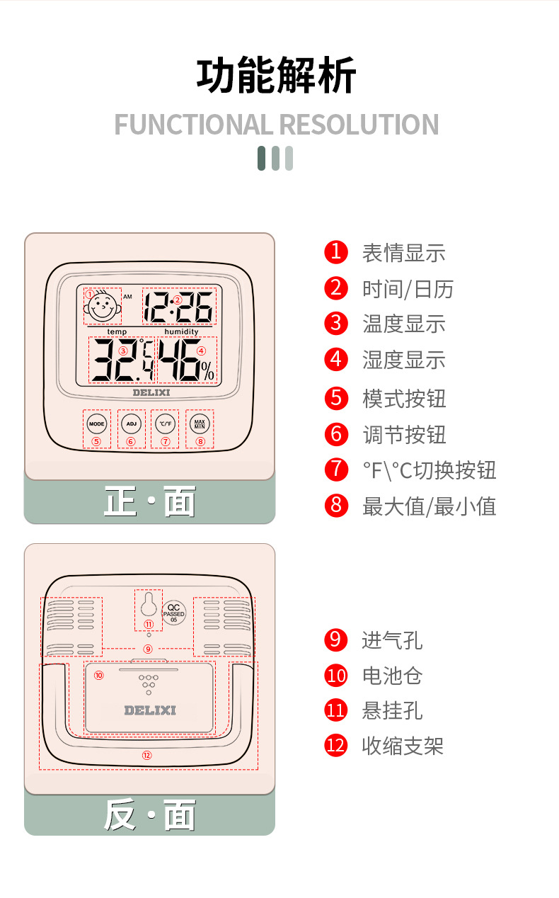 pointer temperature moisture meter (can be hung up)