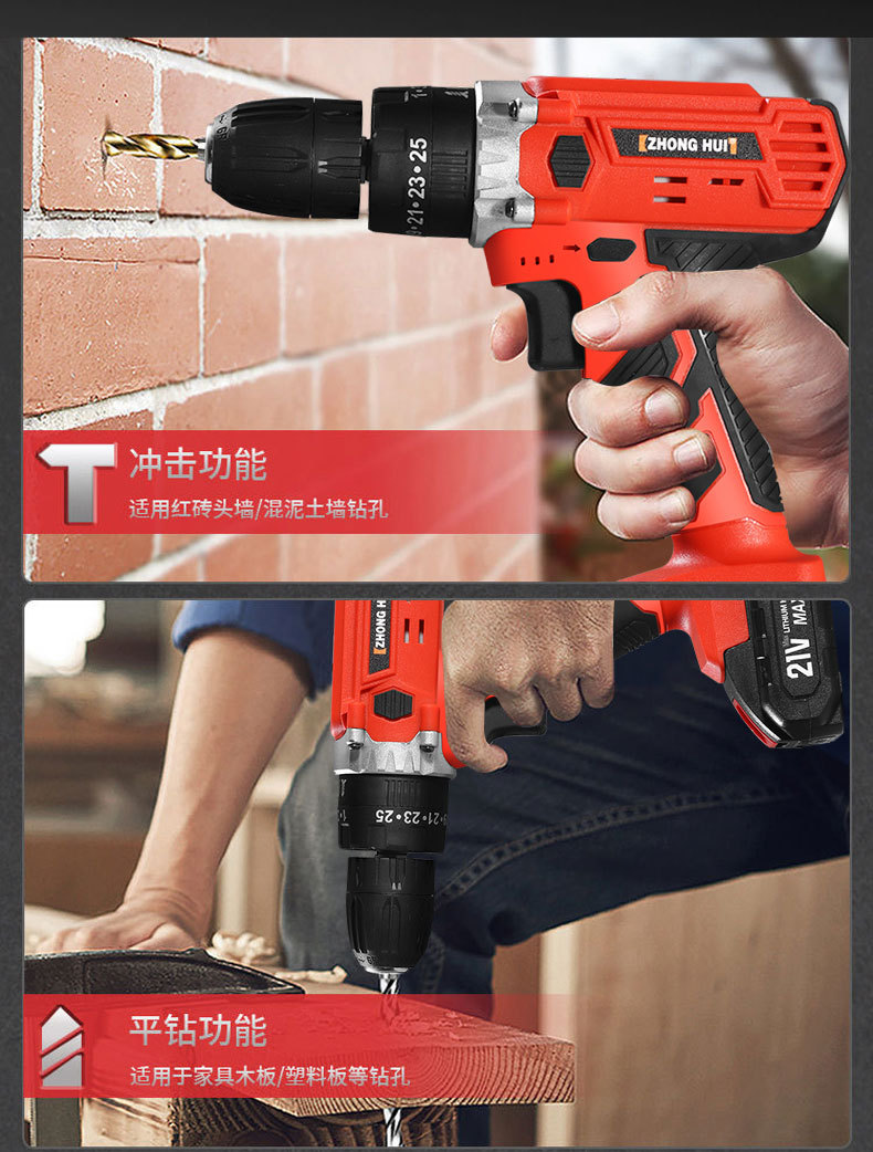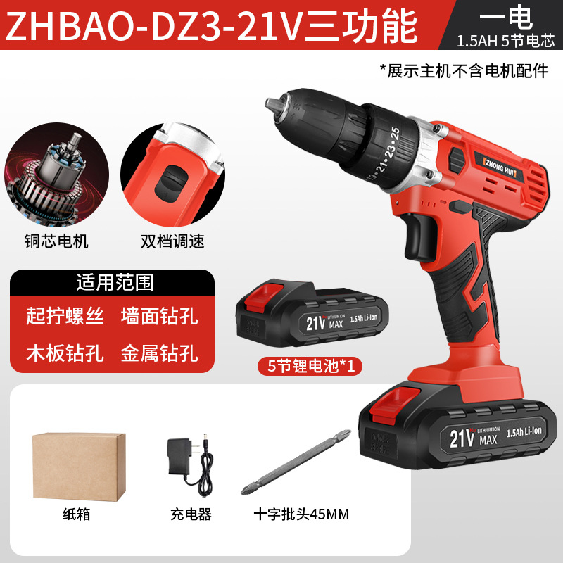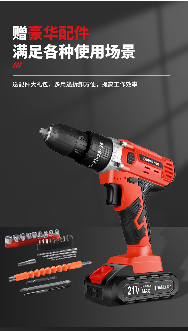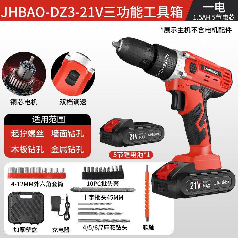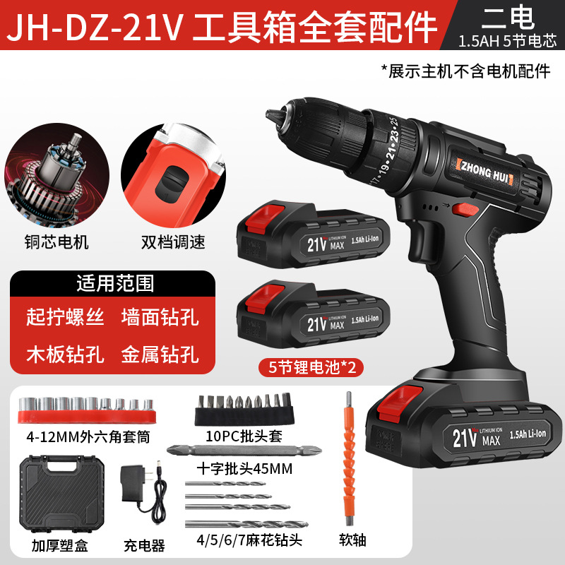 21v ordinary two-speed electric drill 5-section electric (black)