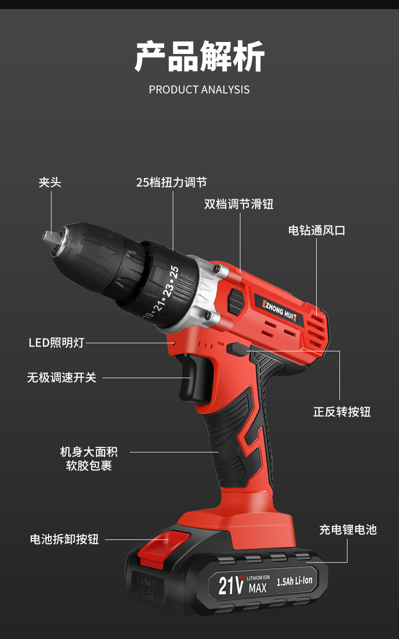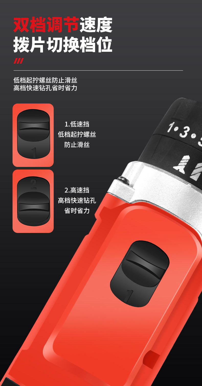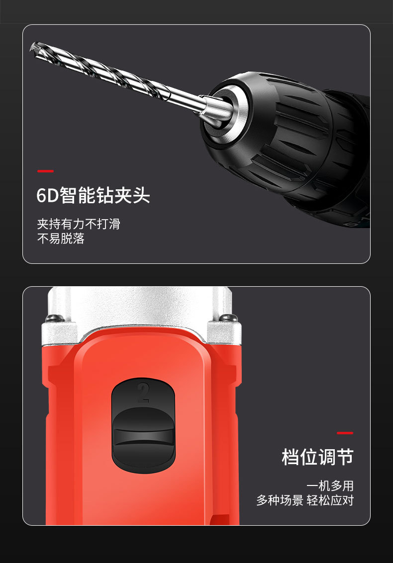 21v ordinary two-speed electric drill 5-section electric (black)