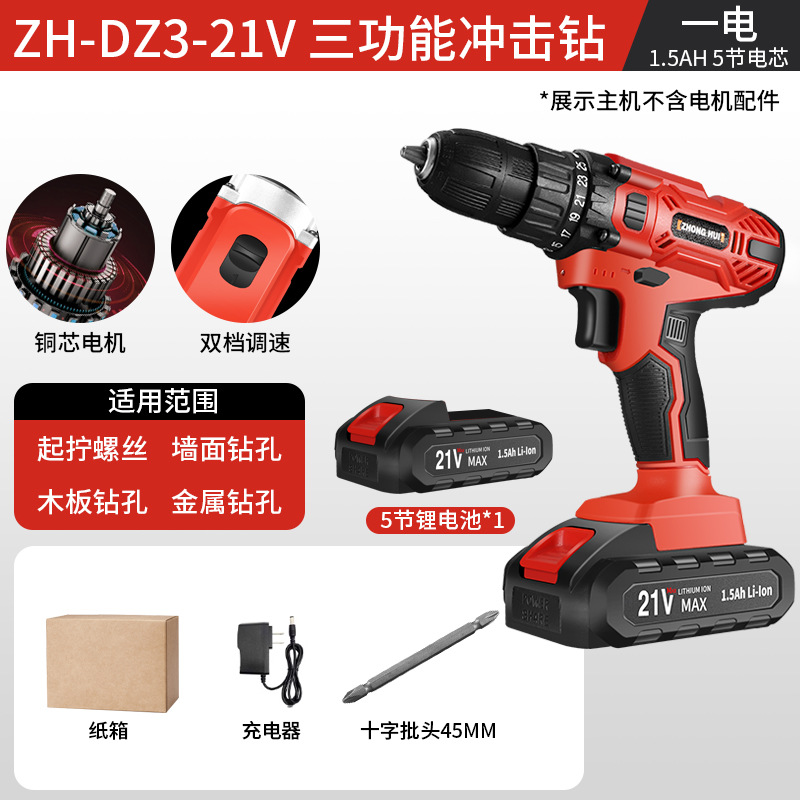 21v three functions impact drill 5 sections one electricity (red)