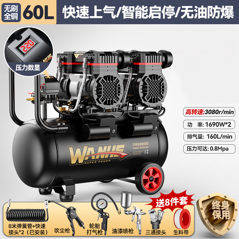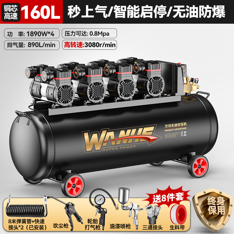 160l-copper core [intelligent pressure king] quick air supply + oil-free explosion-proof +8-piece set