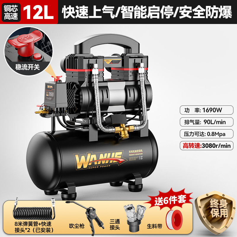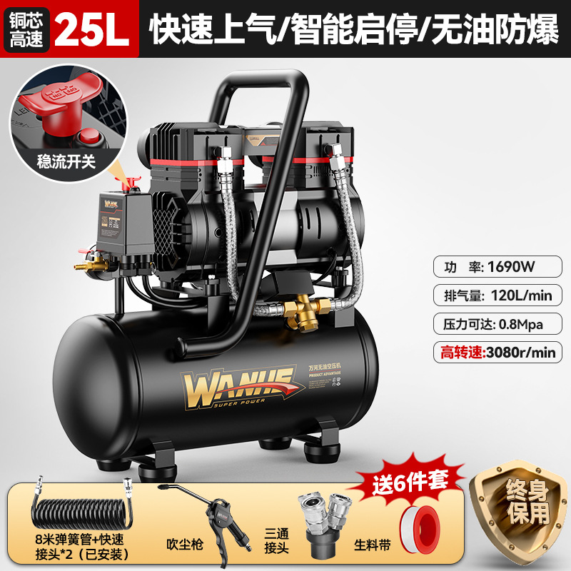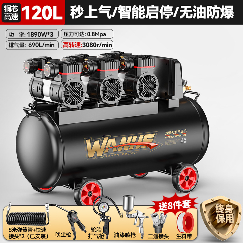 120l-copper core [intelligent pressure king] quick air supply + oil-free explosion-proof +8-piece set