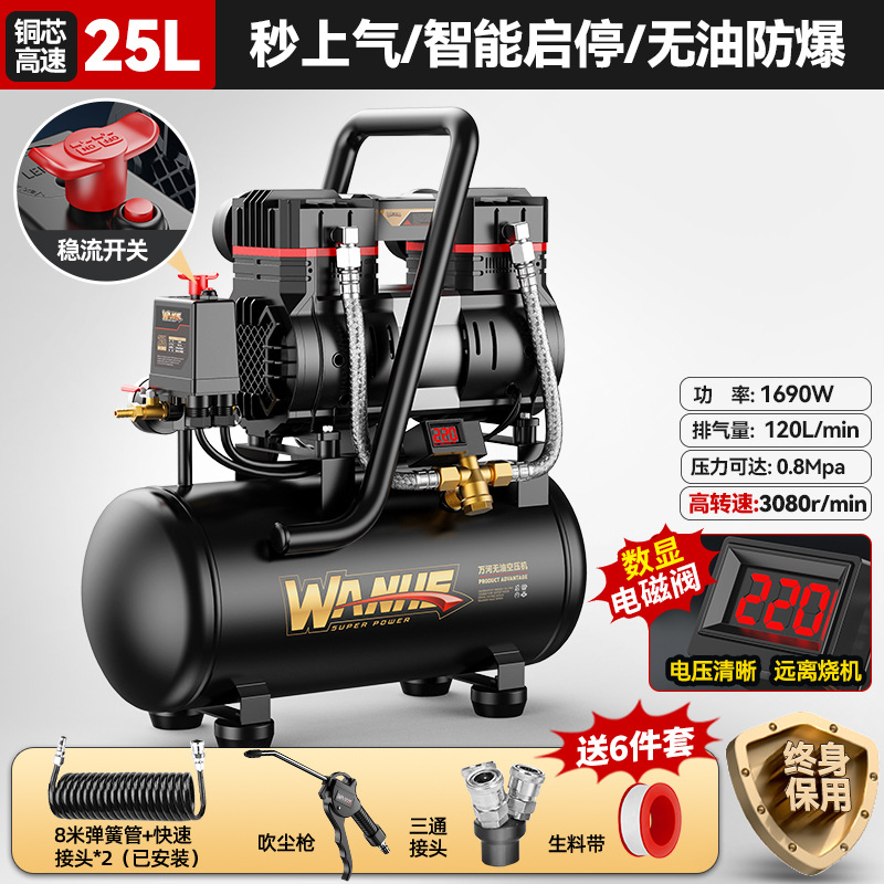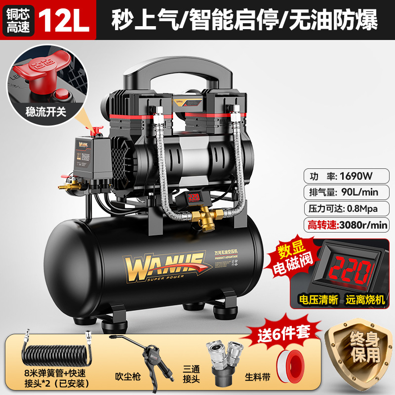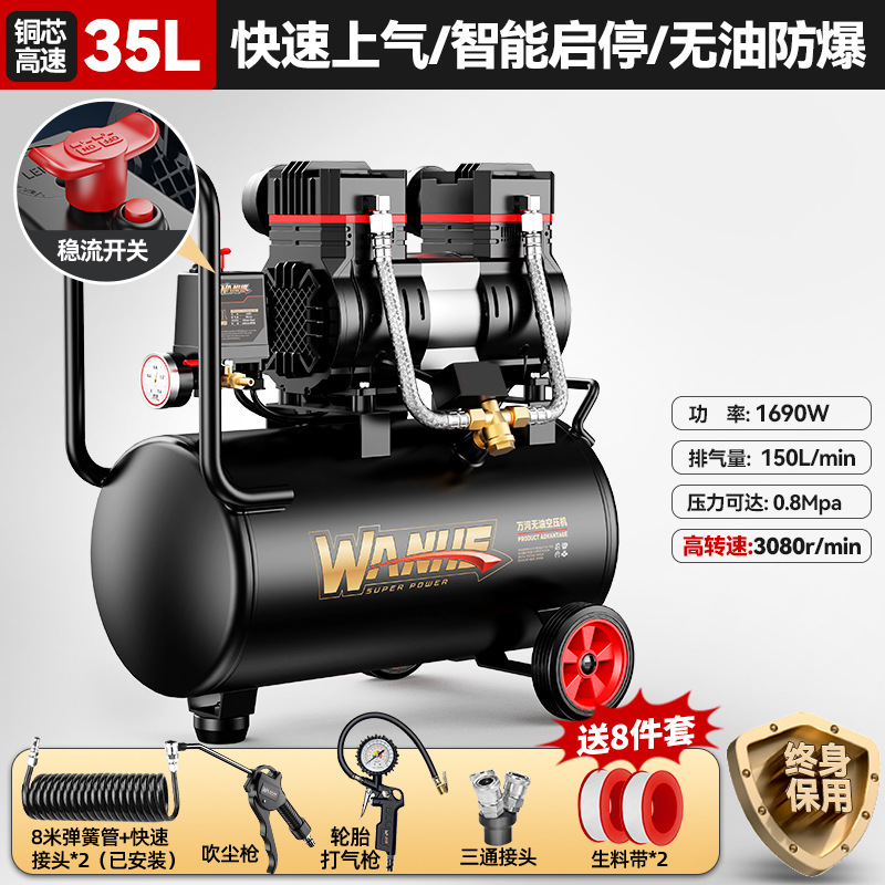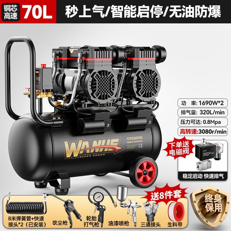 70l-copper core [intelligent pressure king] quick air supply + oil-free explosion-proof +8-piece set