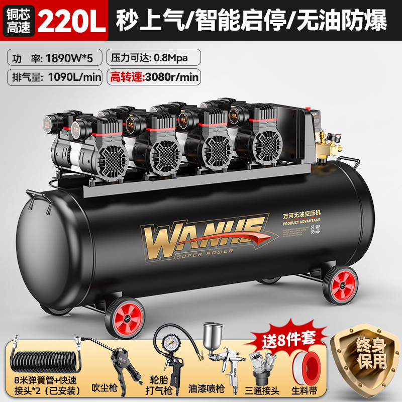 220l-copper core [intelligent pressure king] quick air supply + oil-free explosion-proof +8-piece set
