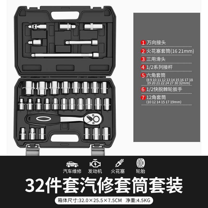 [24-tooth straight handle ratchet special offer] 46 pieces xiaofei sleeve set