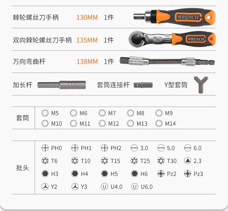 68-in-one straight handle ratchet b suit
