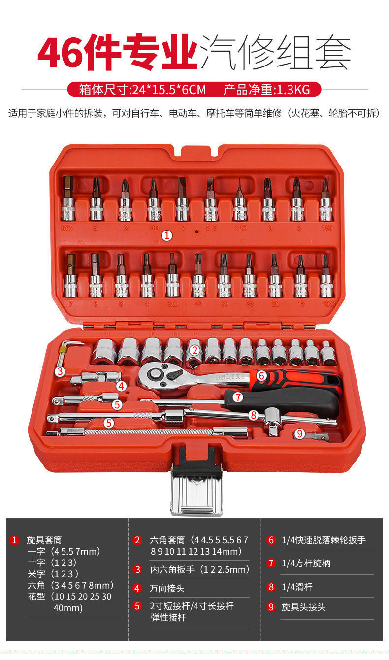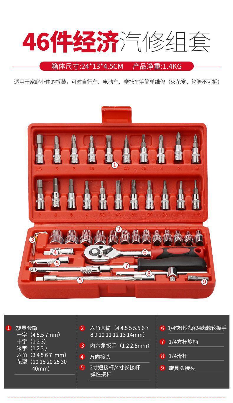 [mini household] 72-tooth ratchet 46-piece set